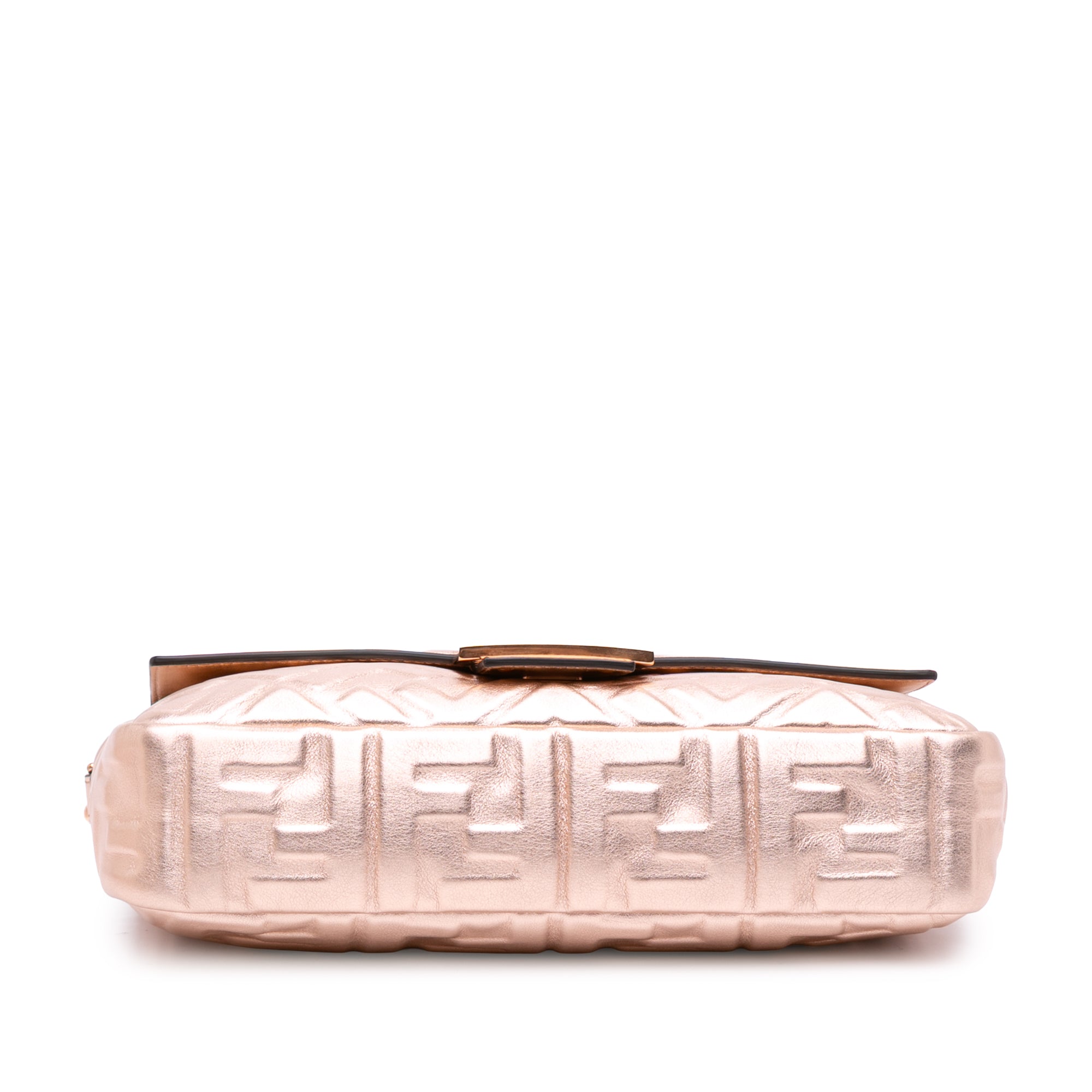 Fendi Zucca Embossed Metallic Leather Baguette Satchel