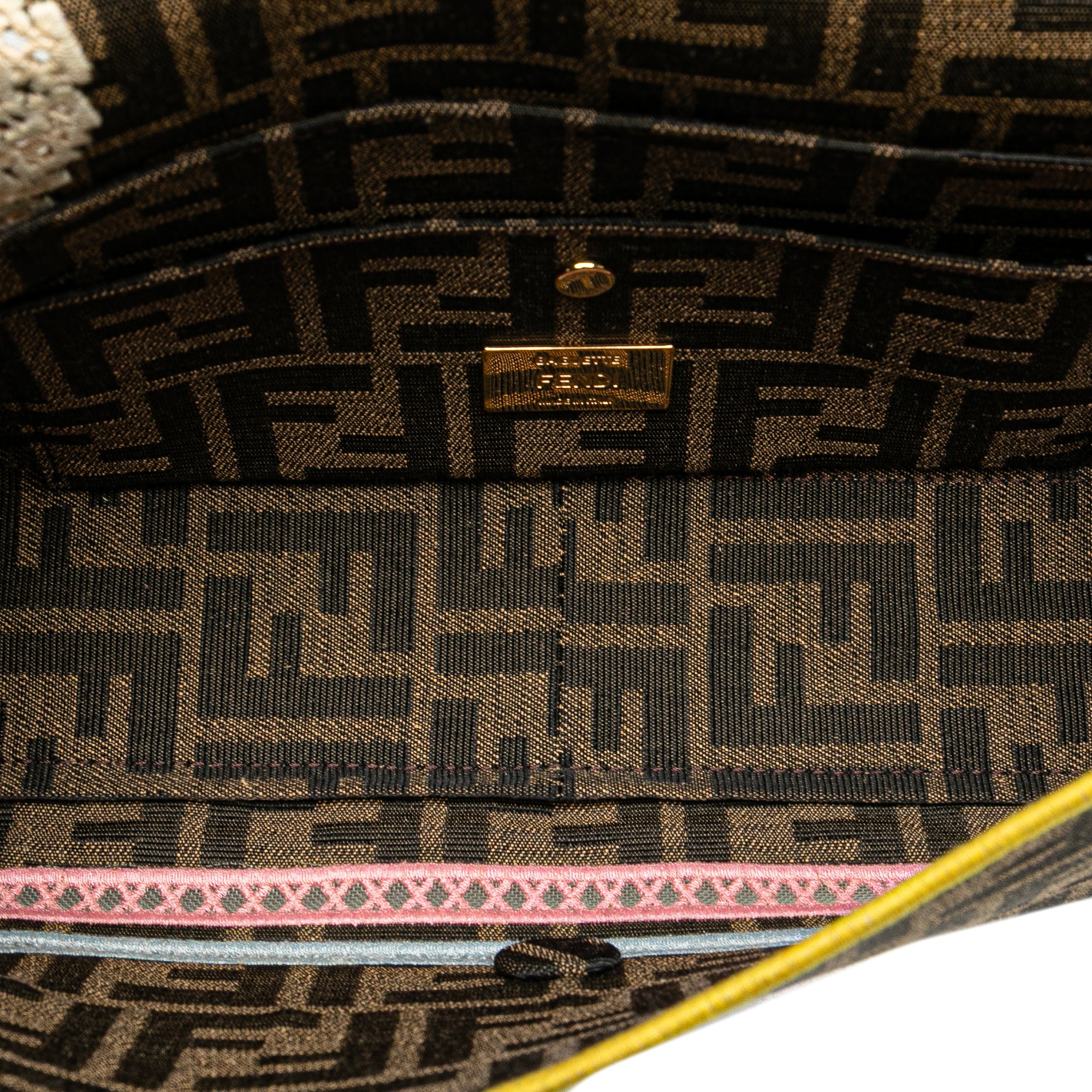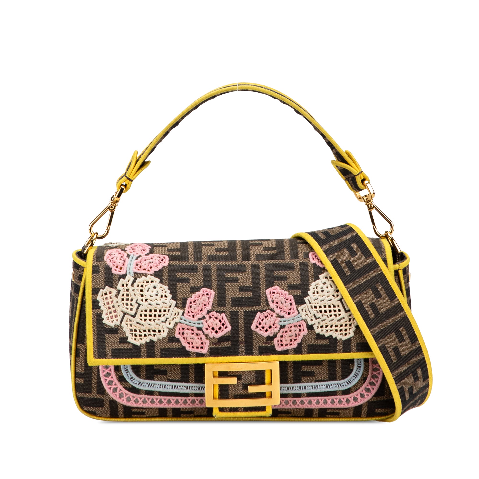 Fendi Zucca Embroidered Canvas Floral Baguette Satchel