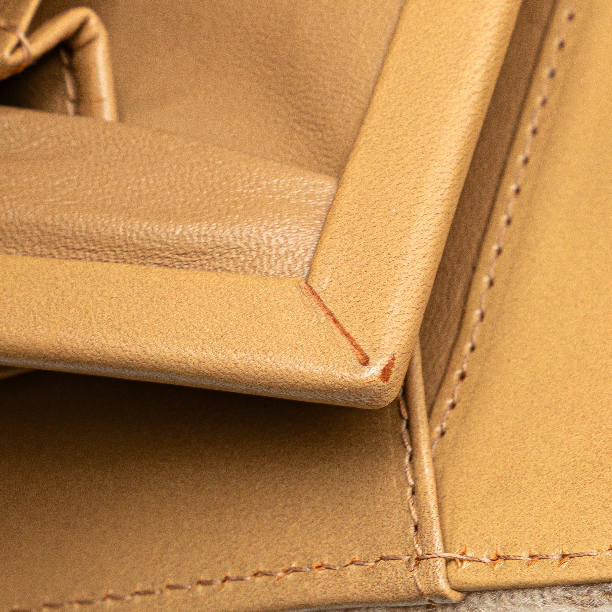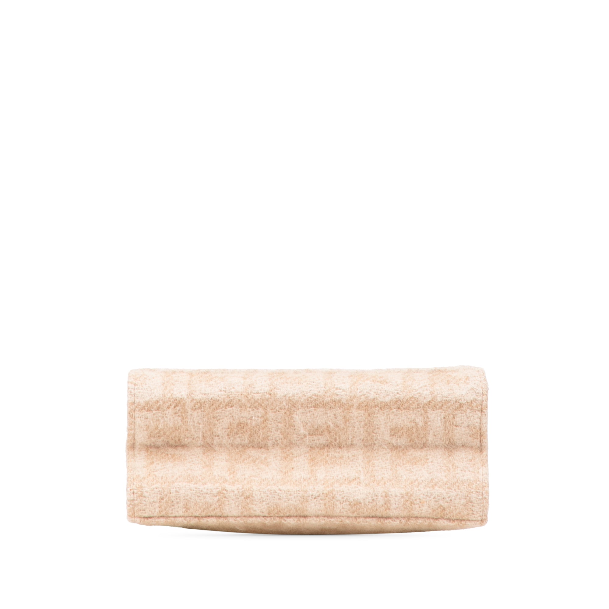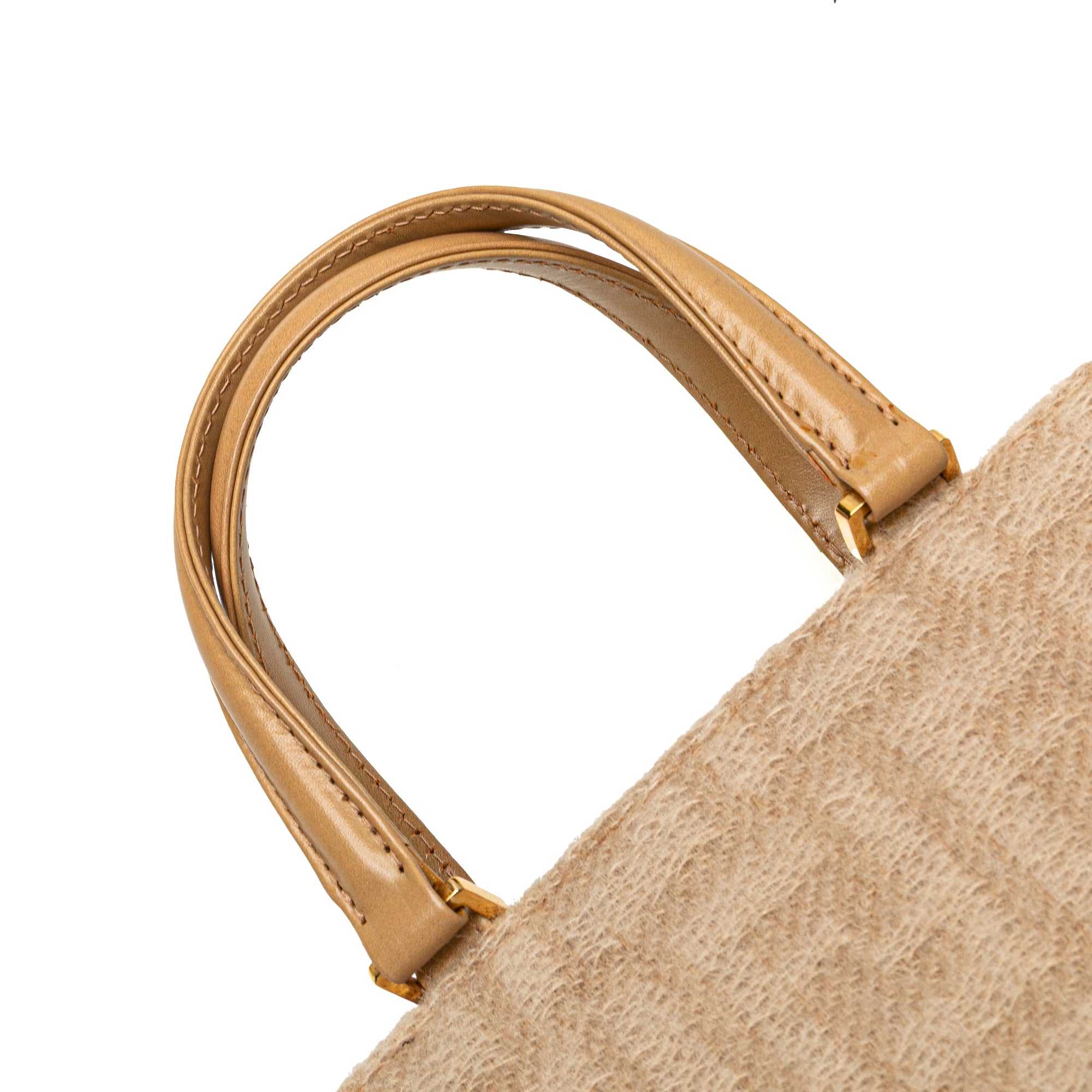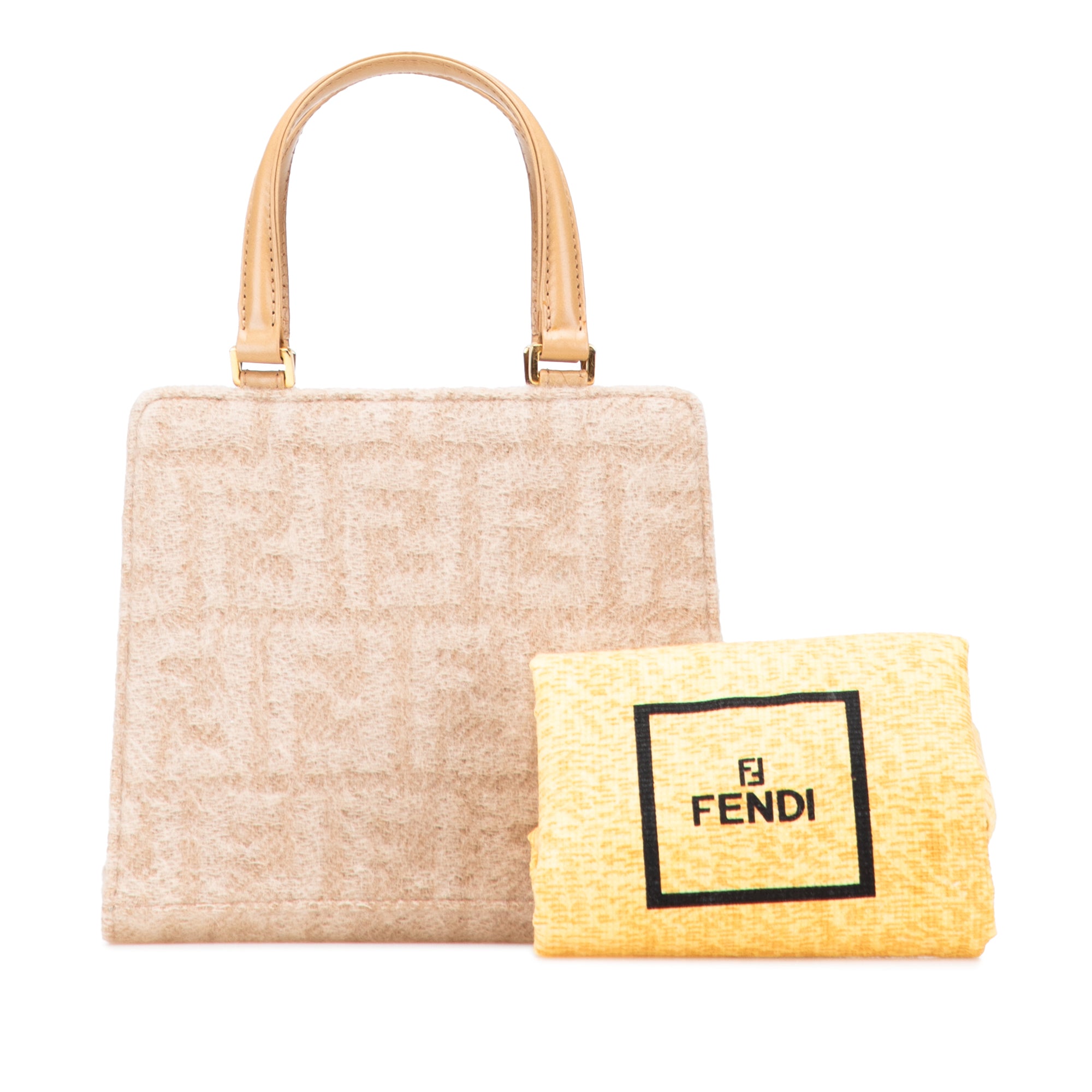 This handbag features a wool body, flat leather handles, a top clasp closure, exterior slip compartments, and an interior slip pocket. Inclusion: Dust bag. Retail Price: 880.00