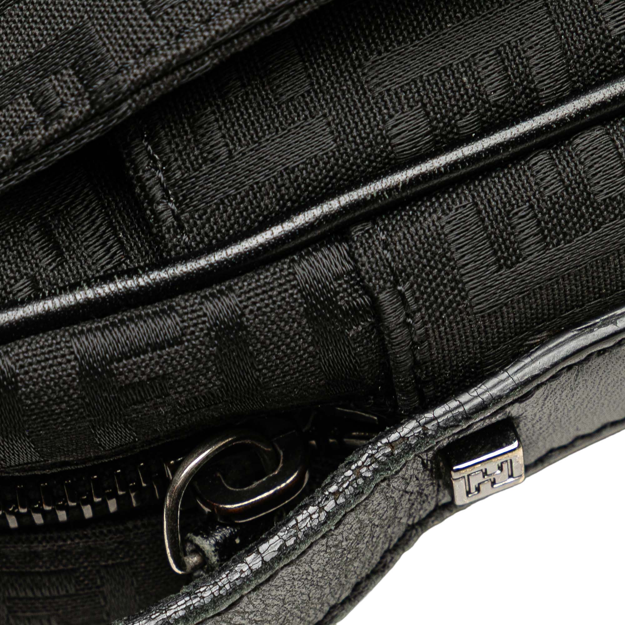 This crossbody features a canvas body with leather trim, an adjustable flat leather shoulder strap, a top zip closure, an exterior front flap pocket, and interior slip pockets. Inclusion: Dust bag. Retail Price: 950.00