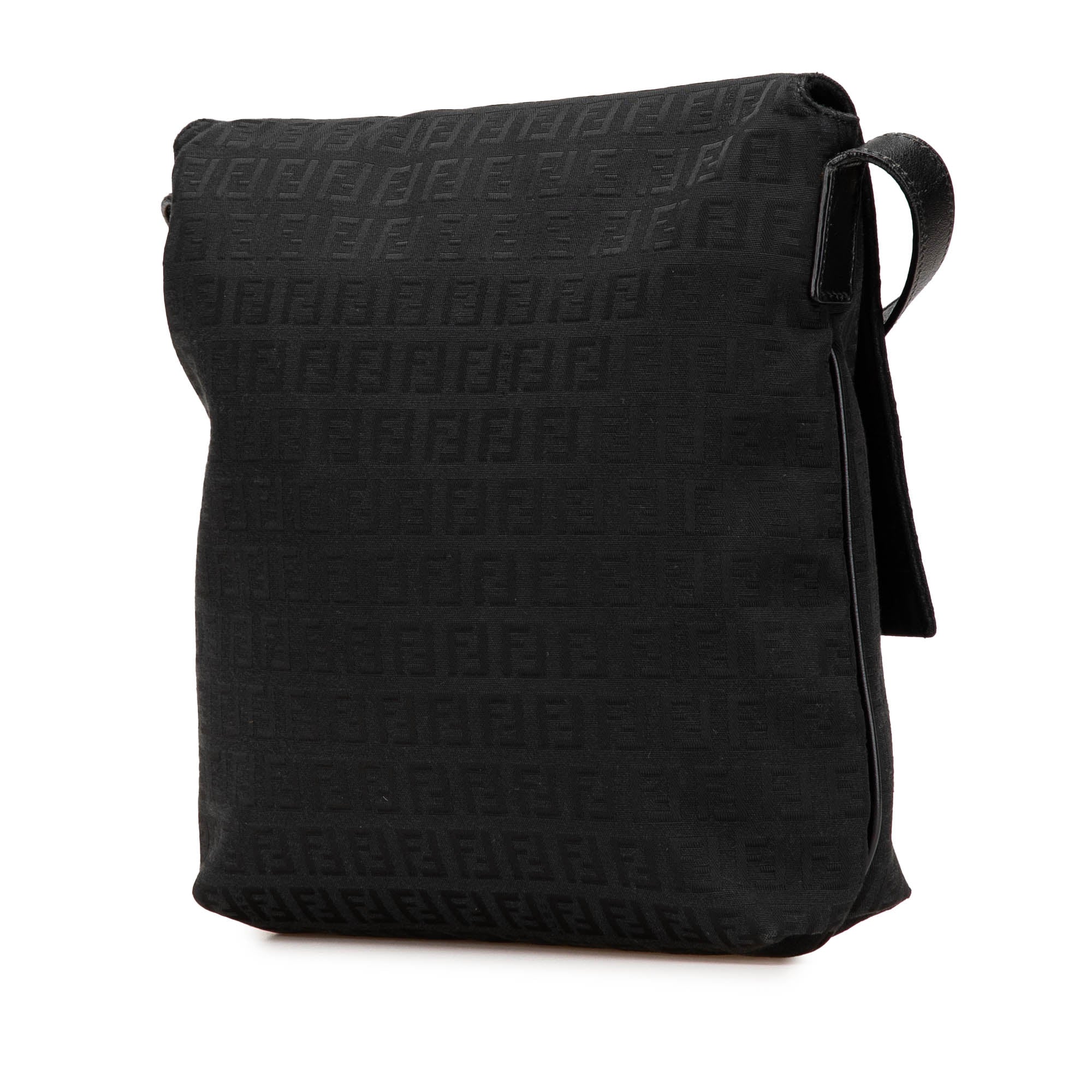 This crossbody bag features a canvas body with leather trim, an adjustable flat leather strap, a flap with magnetic snap closure, and an interior slip pocket. Retail Price: 1400.00