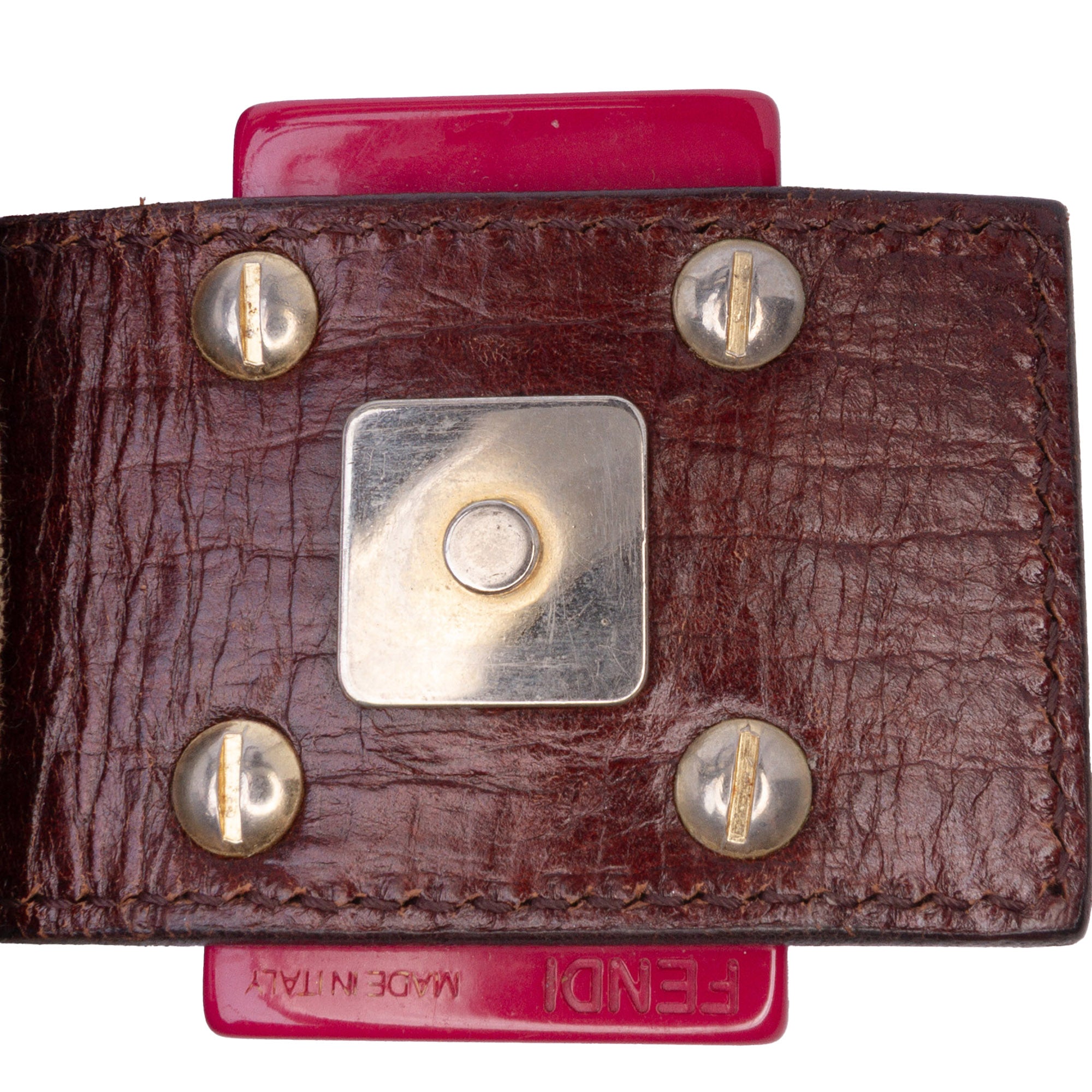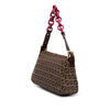 This shoulder bag features a canvas body, an acrylic chain link and adjustable flat leather strap, a front flap with a flat strap and magnetic snap closure, and an interior zip pocket. Retail Price: 1560.00