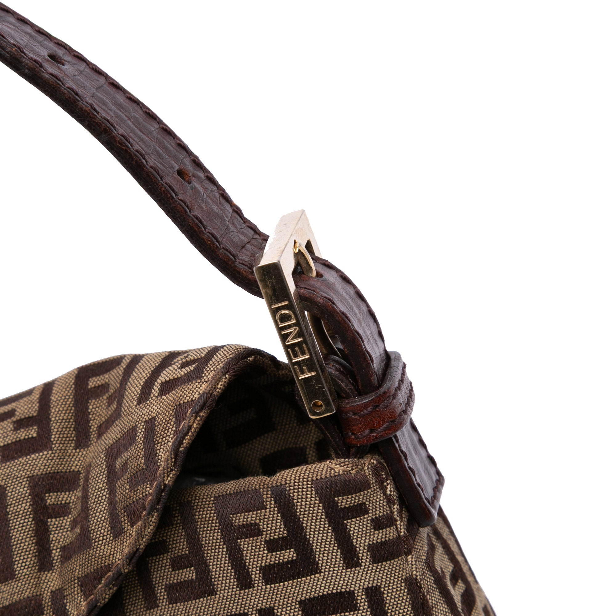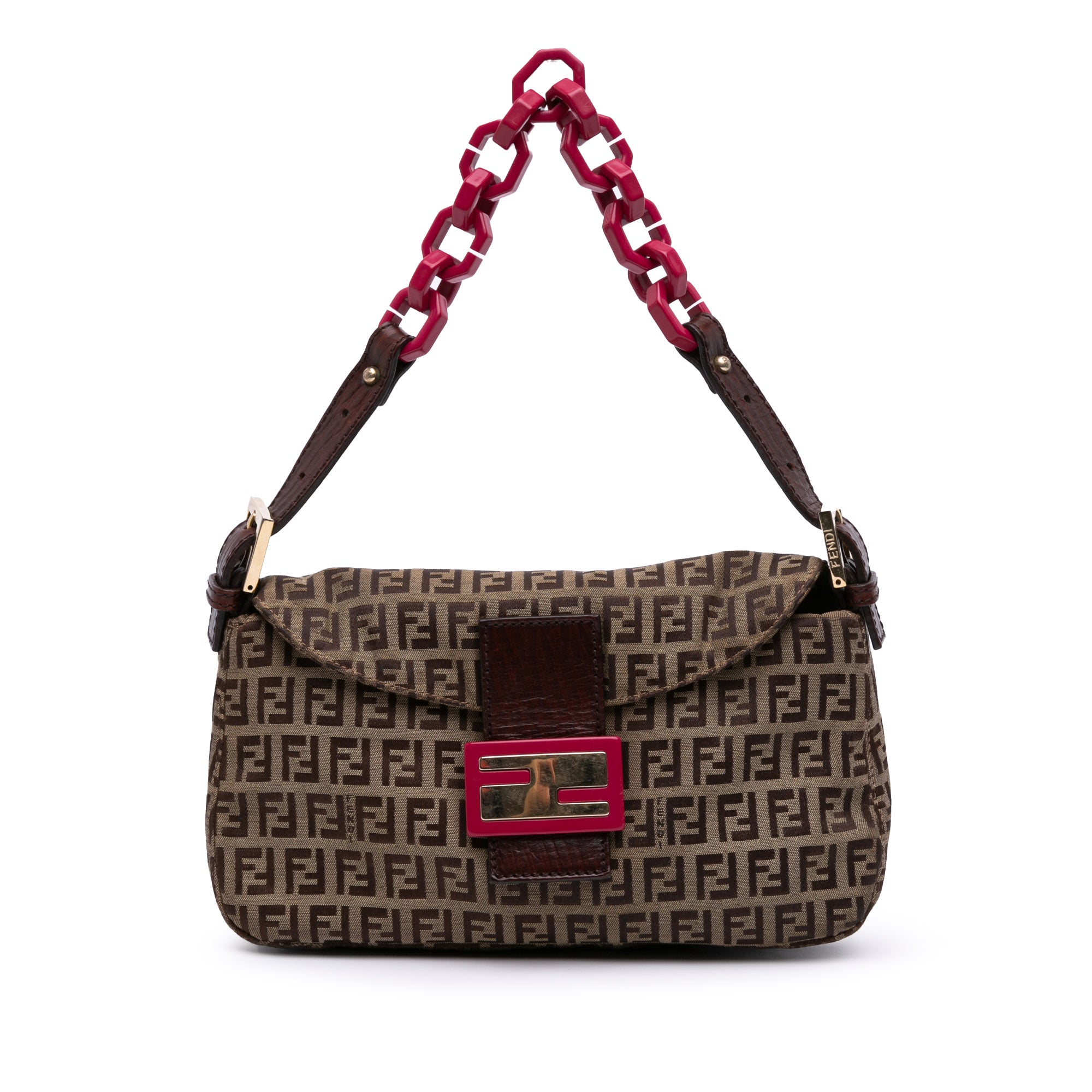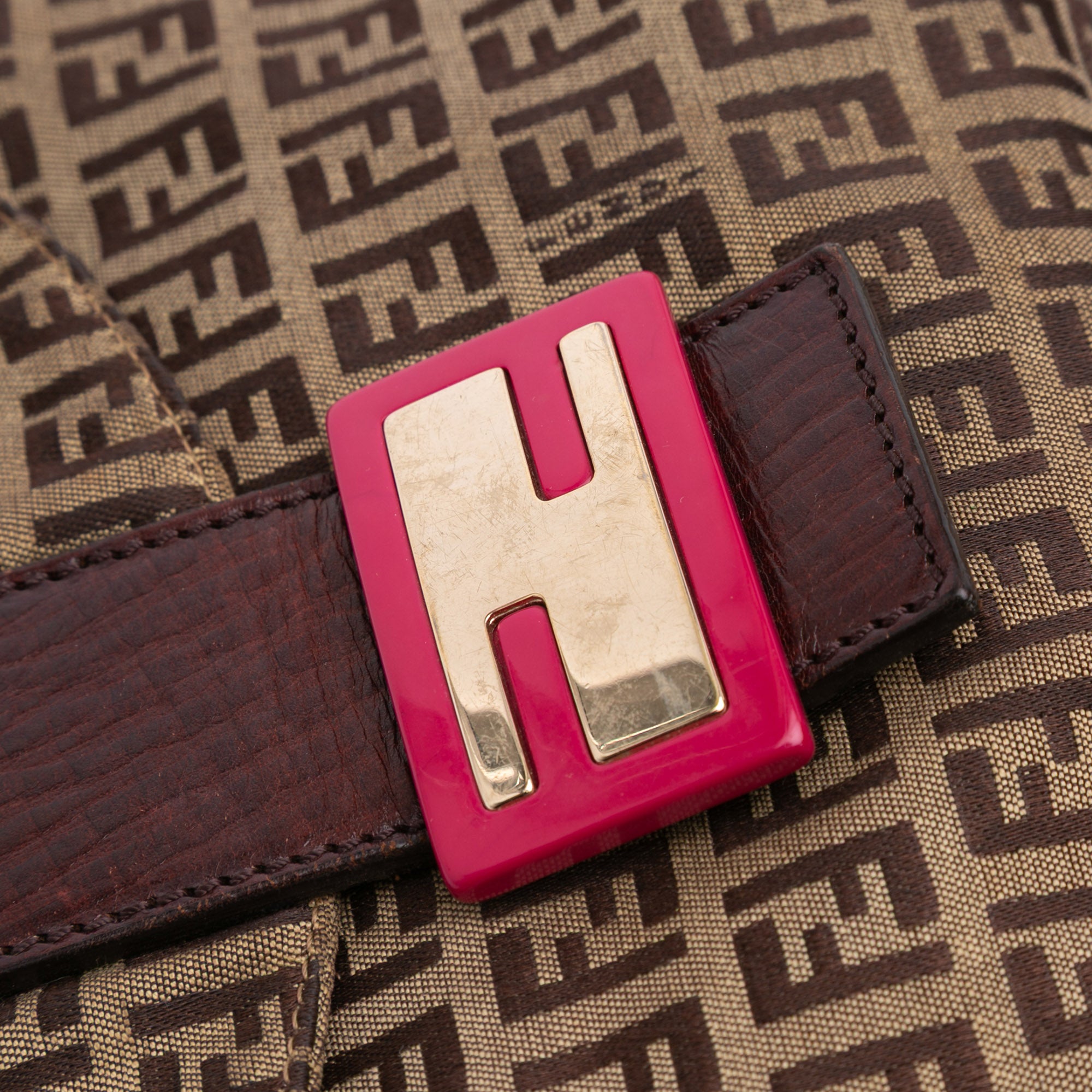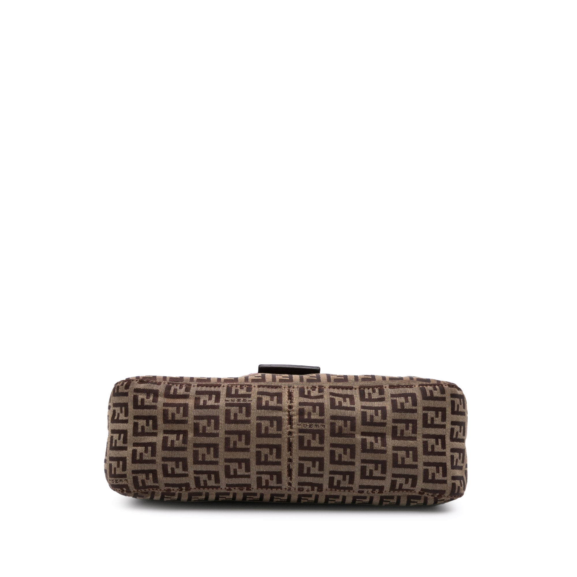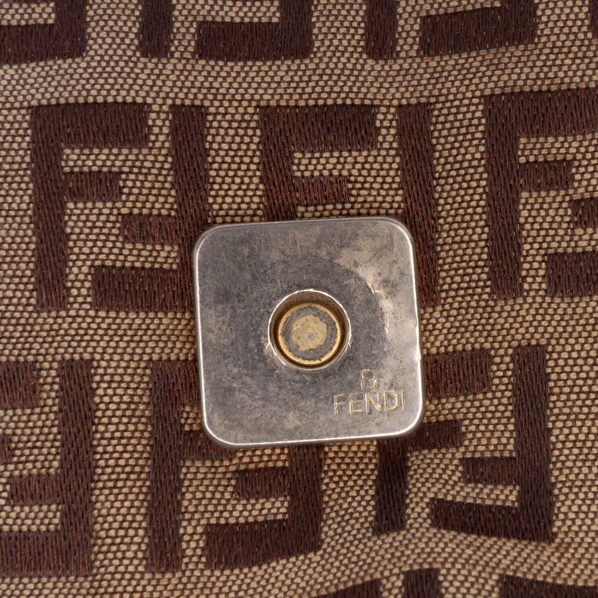 Fendi Zucchino Canvas Double Flap Chain Shoulder Bag