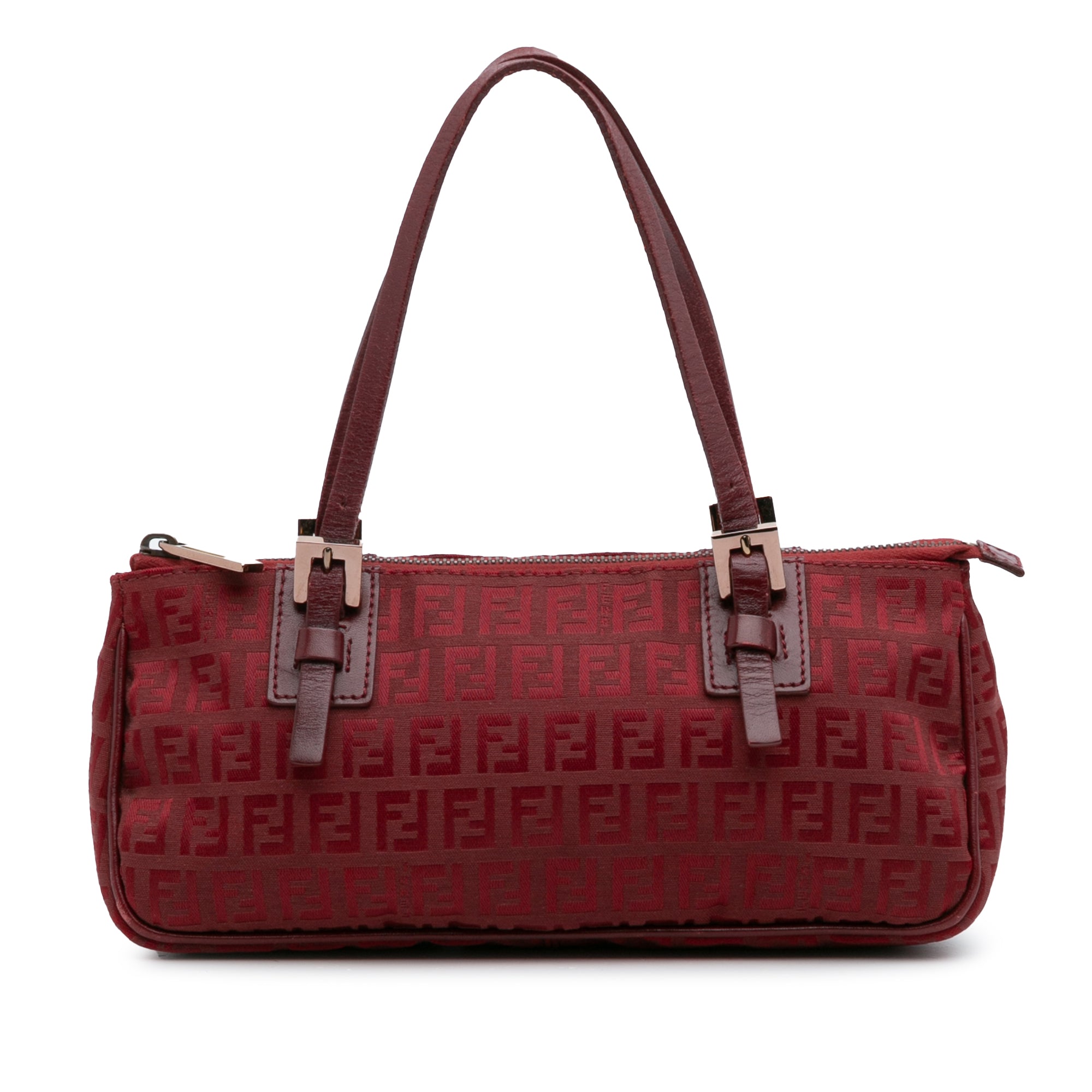 This handbag features a canvas body with leather trim, flat leather handles, a top zip closure, and an interior zip pocket. Retail Price: 810.00