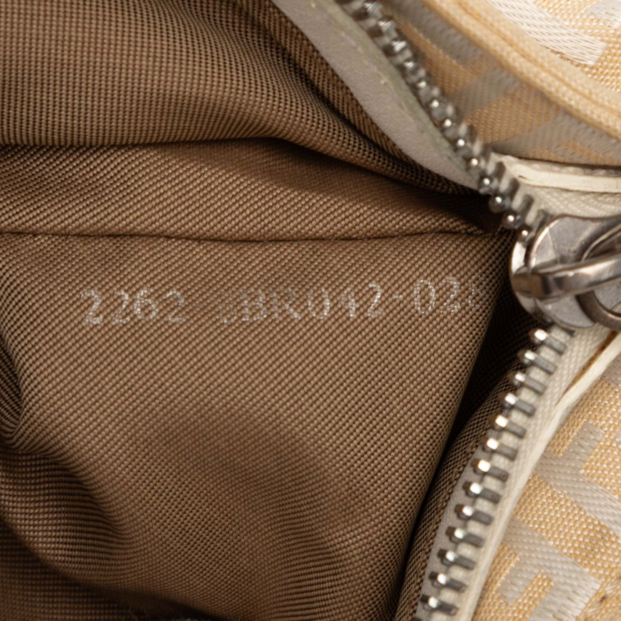 This shoulder bag features a canvas body, a flat leather shoulder strap, a top zip closure, and an interior slip pocket. Retail Price: 990.00
