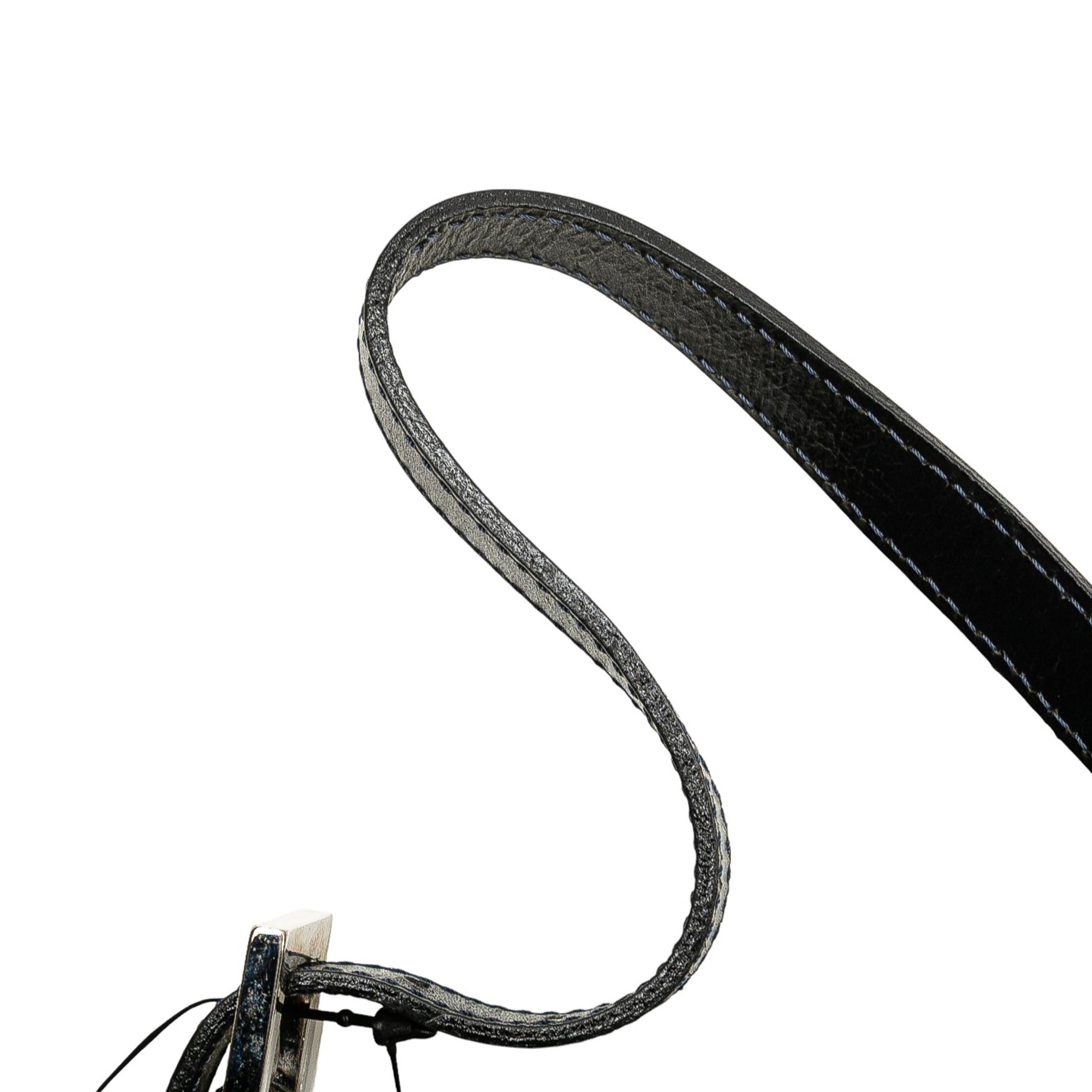 This shoulder bag features a canvas body, a flat leather strap, and a top zip closure. Retail Price: 1000.00
