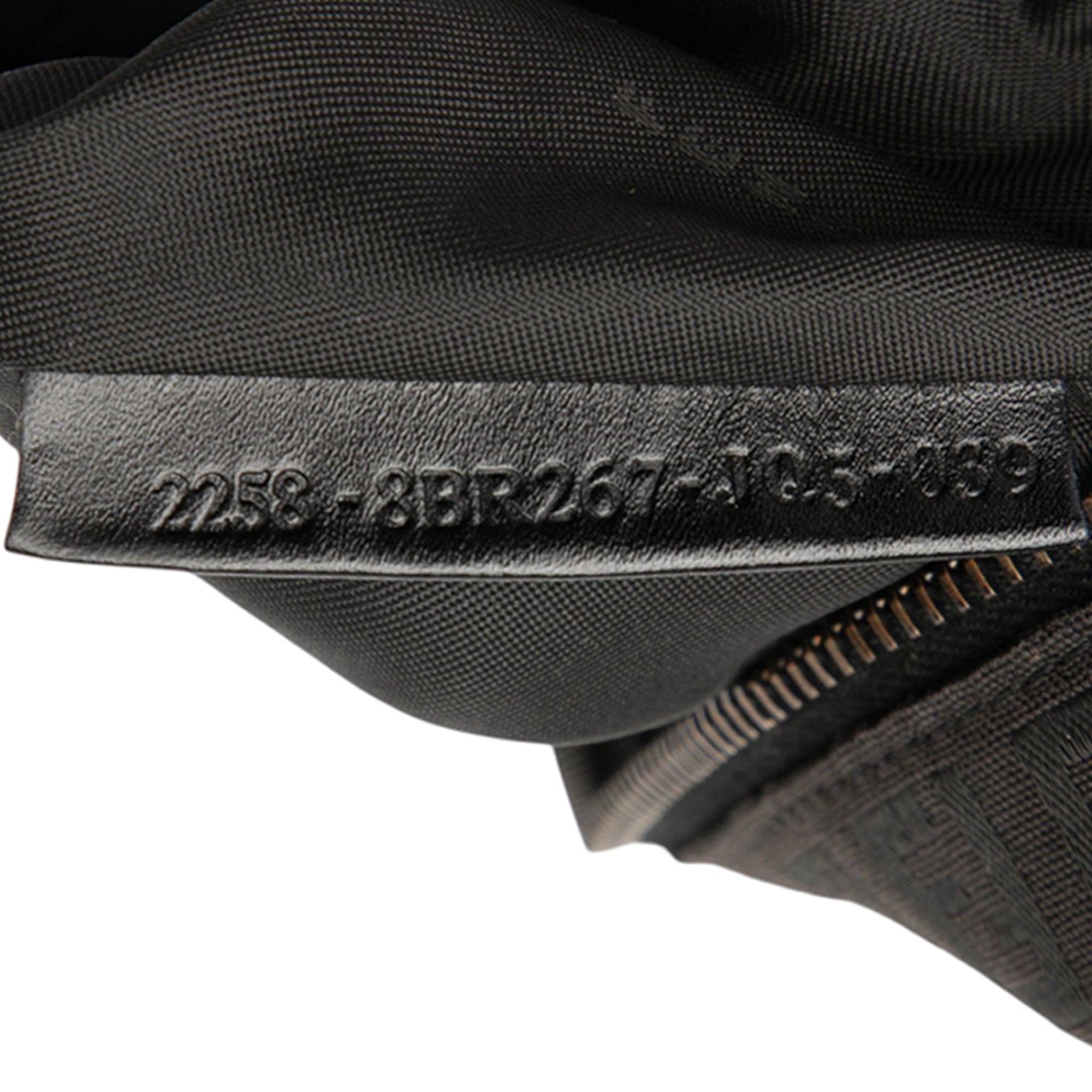 This shoulder bag features a canvas body, flat leather strap, a top zip closure, and an interior zip pocket. Retail Price: 920.00