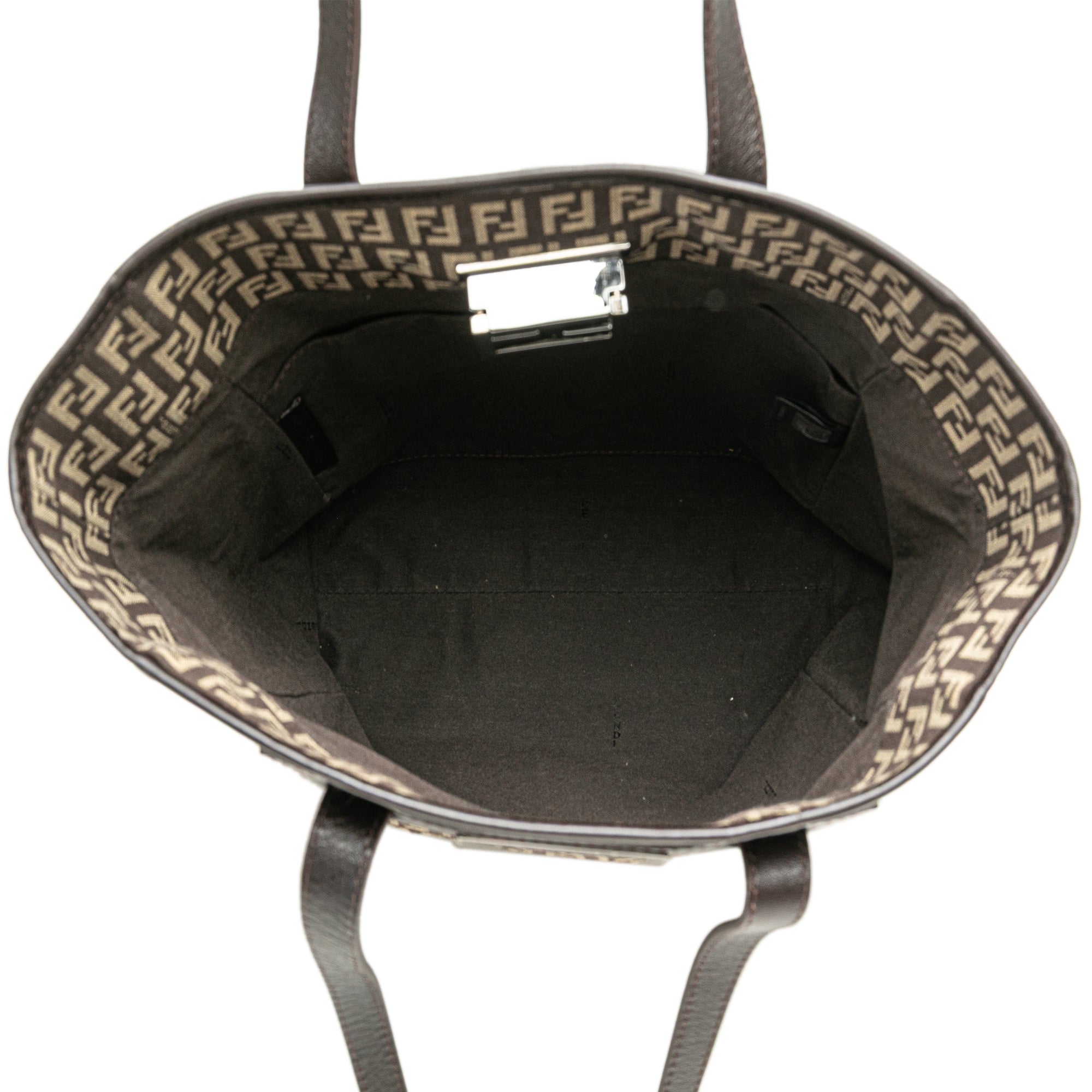 This tote features a canvas body with leather trim, flat leather handles, an open top with flip lock closure, and an interior slip pocket. Retail Price: 1000.00