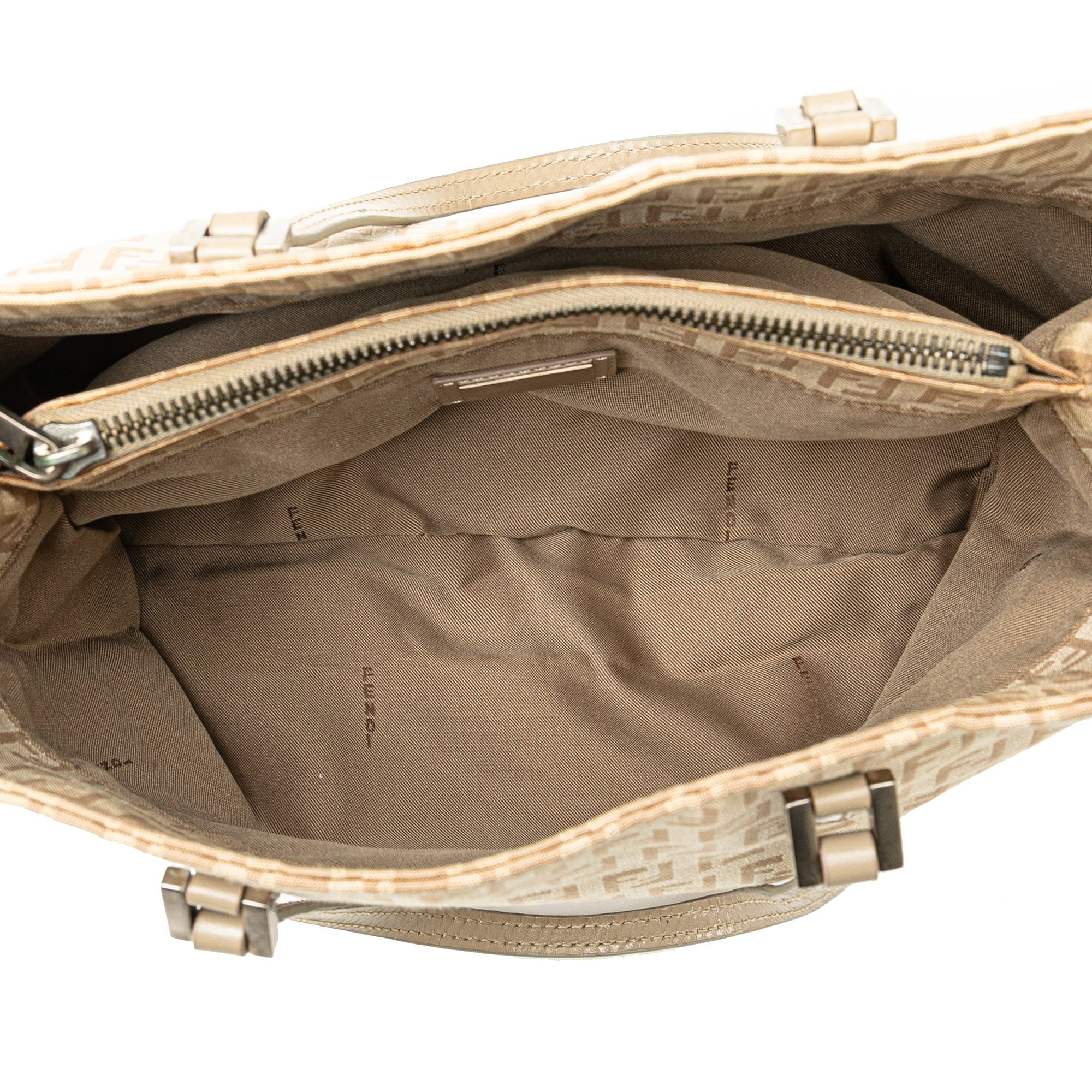 This tote features a canvas body, flat leather straps, an open top, and an interior zip compartment. Retail Price: 1890.00
