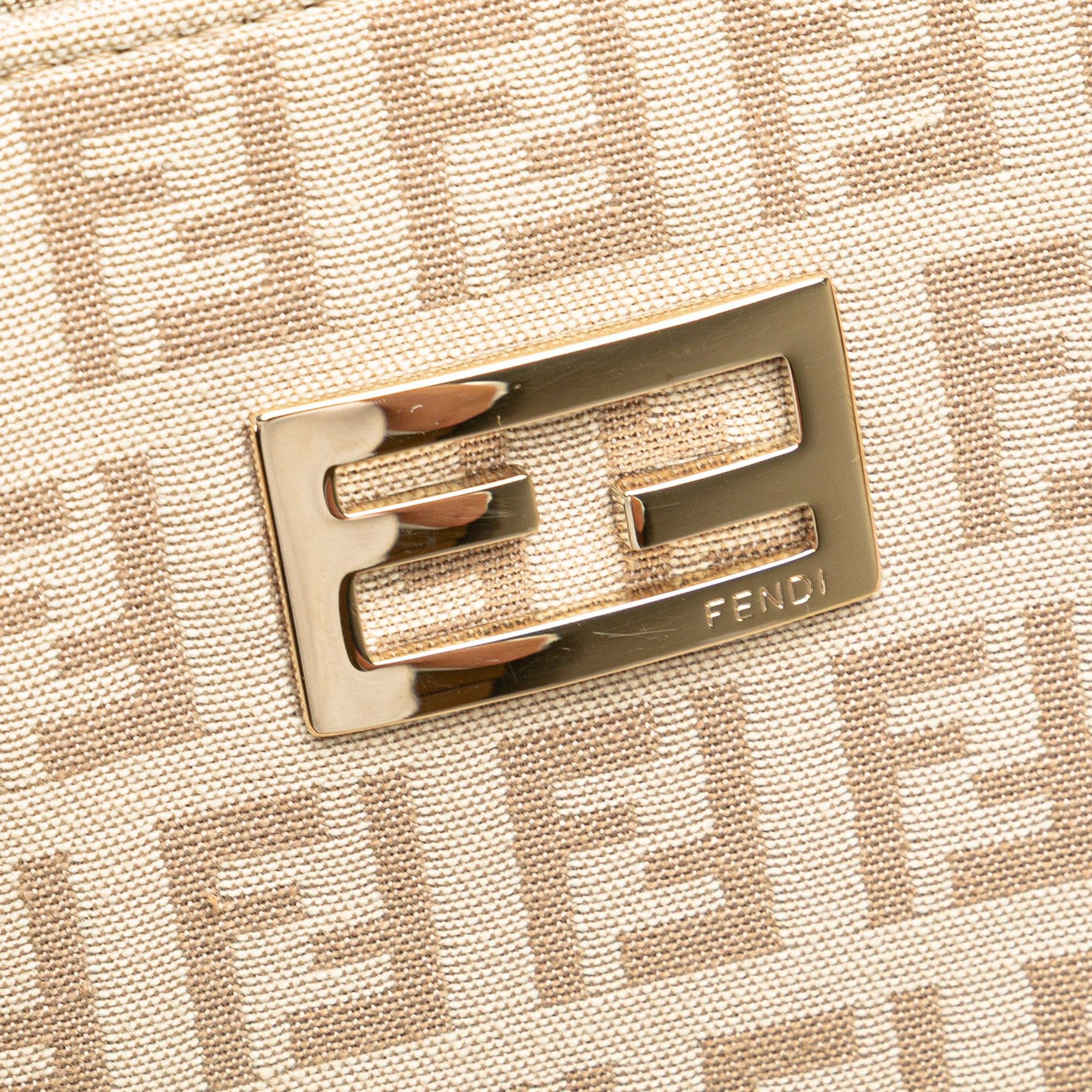 This tote features a canvas body, flat leather handles, an open top, and an interior zip compartment. Retail Price: 550.00