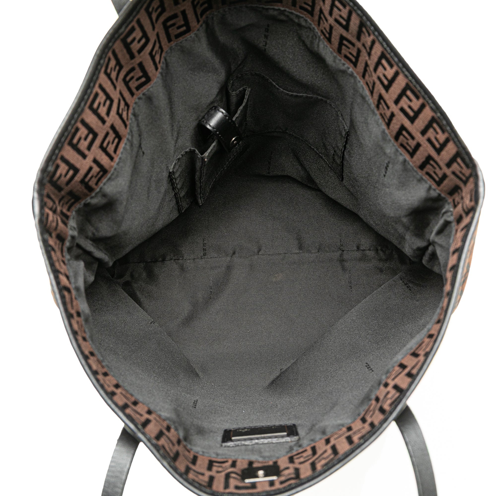 This tote bag features a canvas body with leather trim, flat leather straps, an open top with magnetic snap closure, and an interior slip pocket. Retail Price: 1145.00