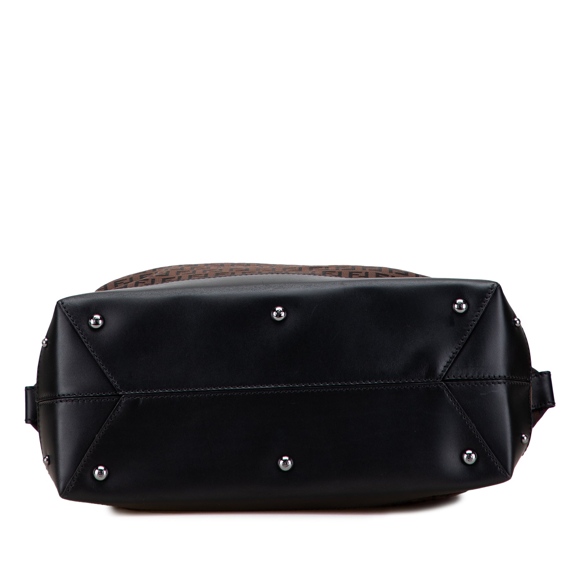 This tote bag features a canvas body with leather trim, rolled leather handles, a top zip closure, and interior zip and slip pockets. Inclusion: Dust bag. Retail Price: 700.00