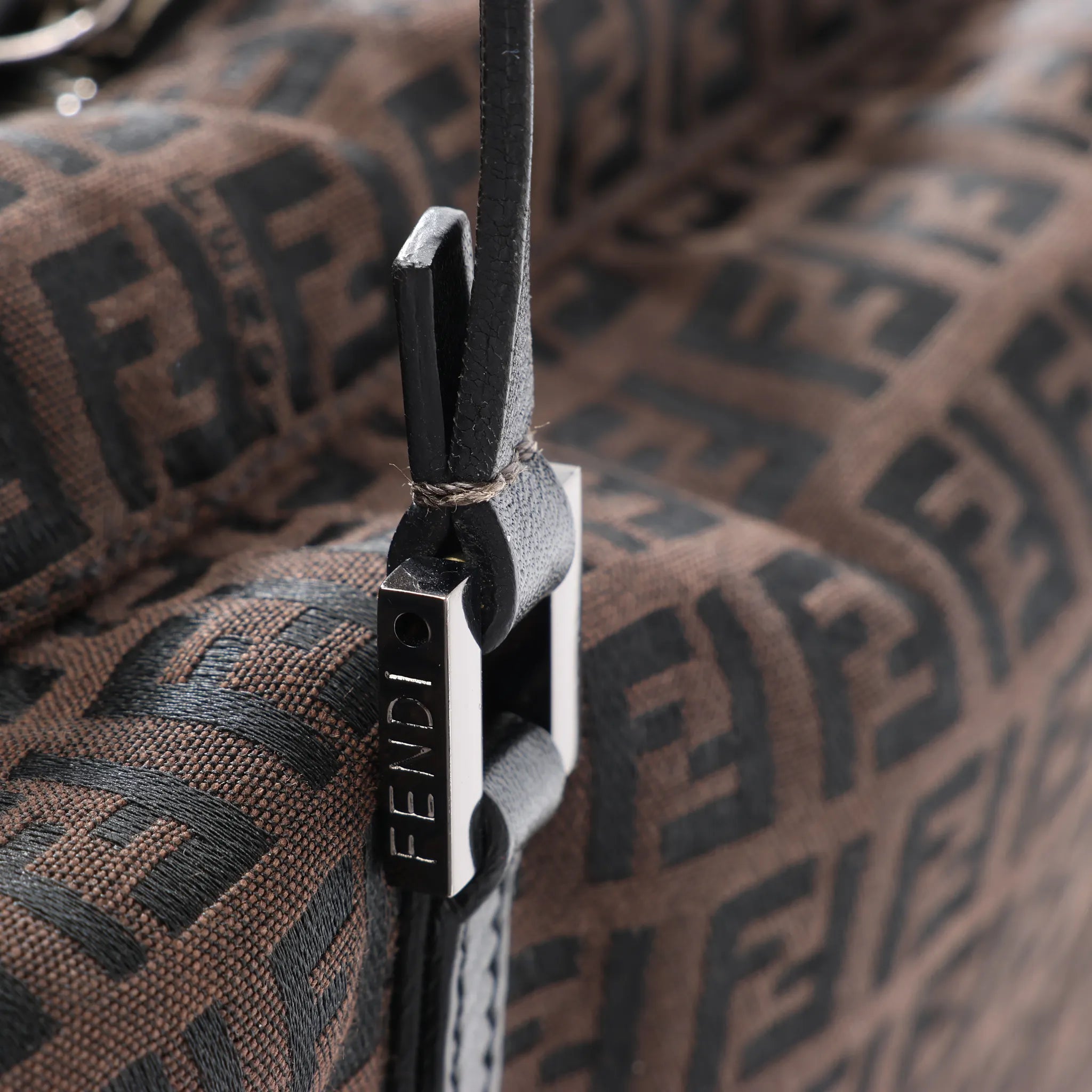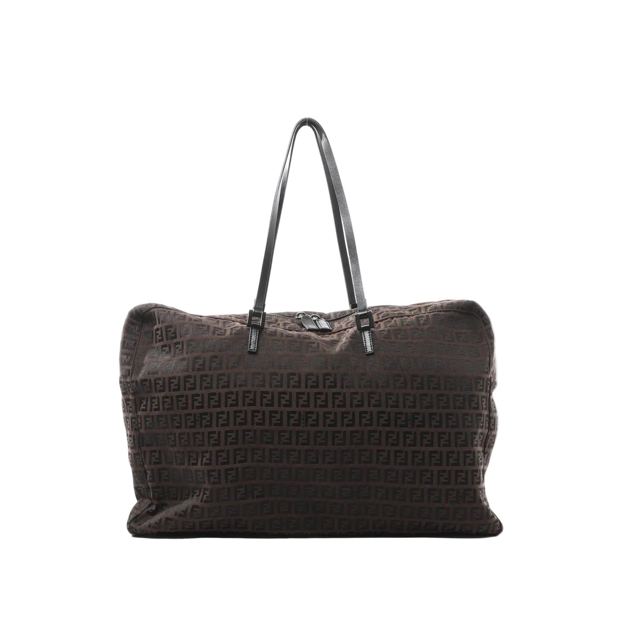 Brand: FENDI Model: OtherSize: LargeWidth: 38 cmHeight: 29 cmExterior Condition: ExcellentInterior Condition: ExcellentCondition Details: The exterior is clean and excellent condition, but with some creases and there is light snag. The leather handles are clean and in great condition with light crease and some rubibngs. The hardware is bright, but has scratches. The interior is in excellent condition.Colour: BrownInterior Colour: BrownHardware Colour: SilverMaterial: Cloth, LeatherComes With: -
