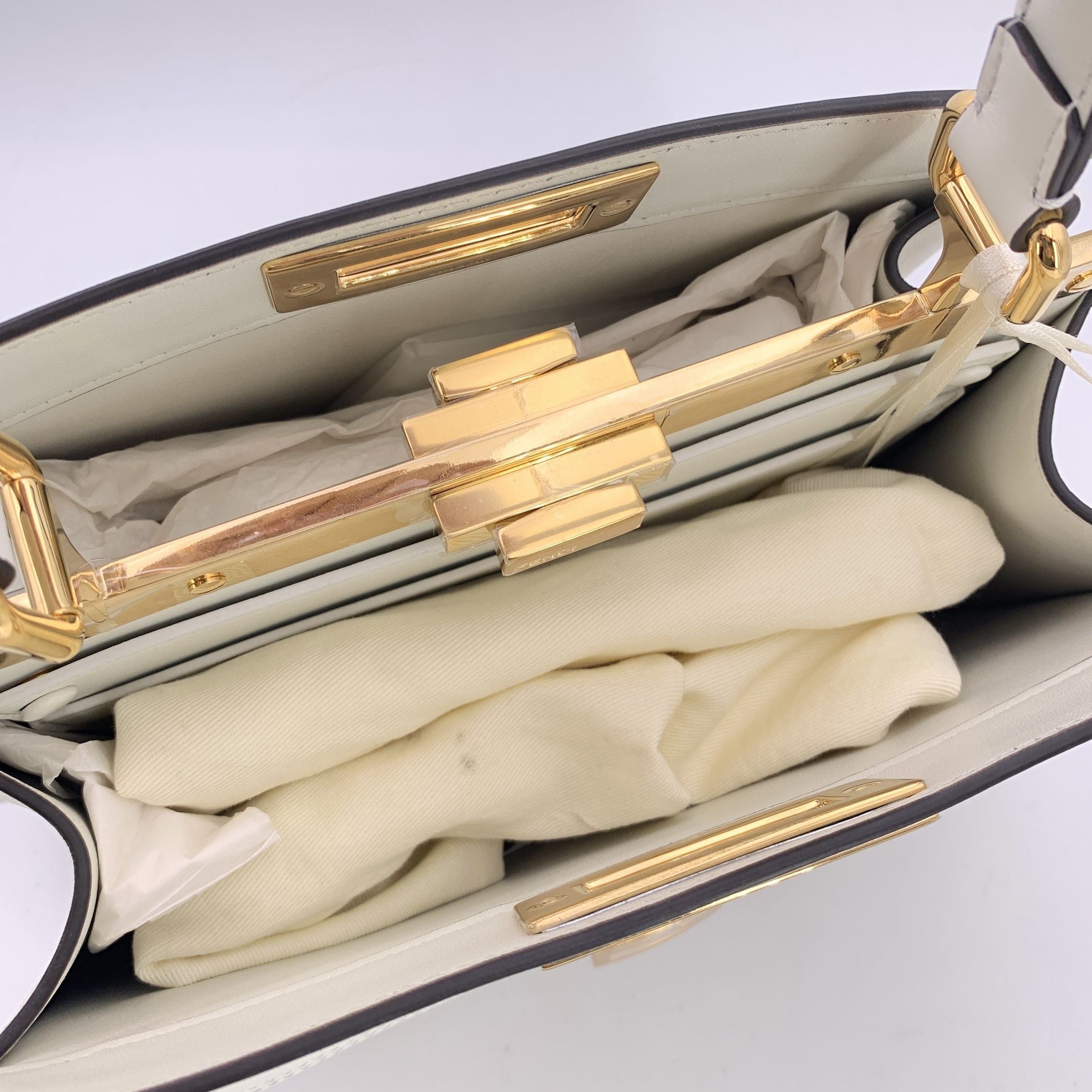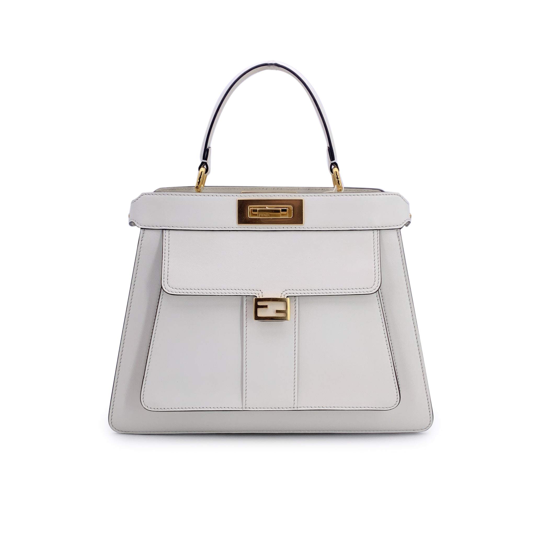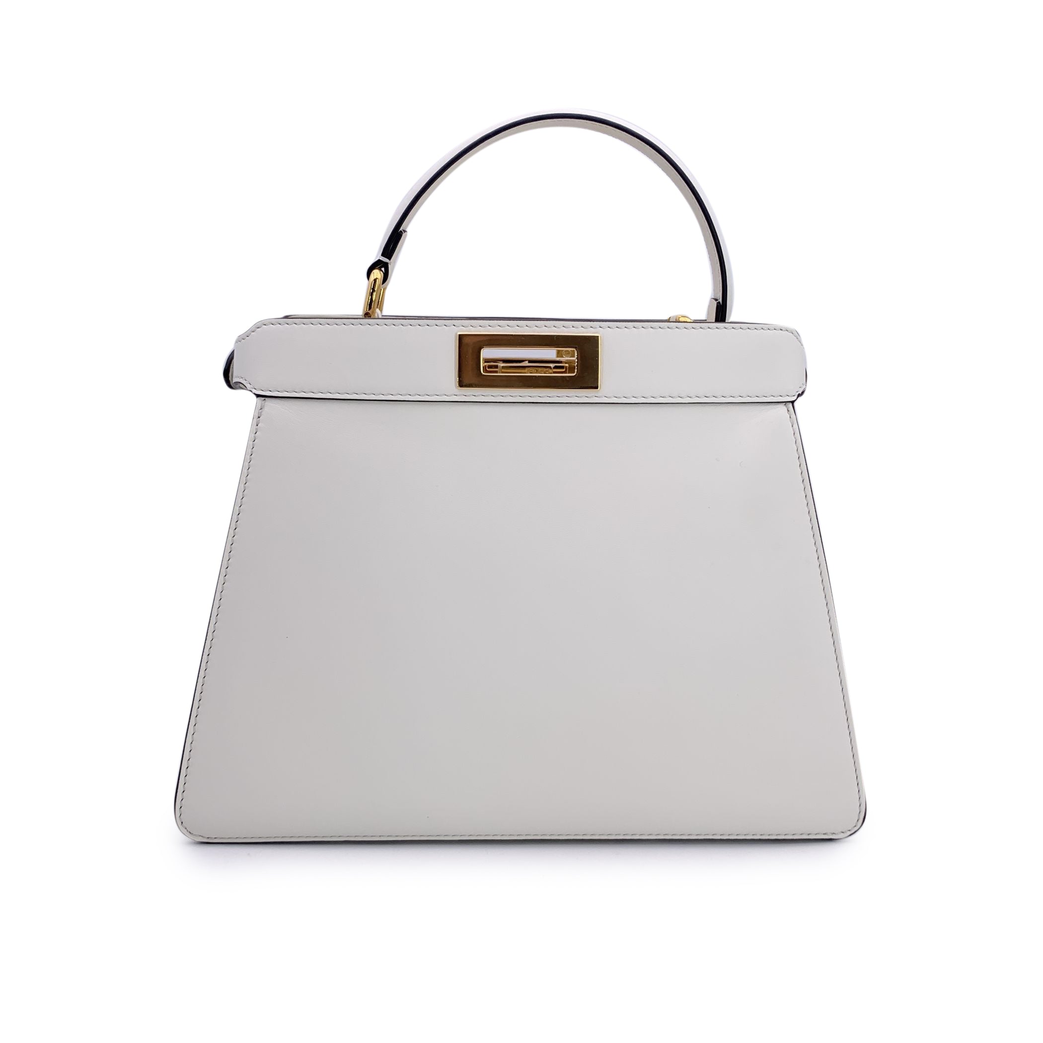This Beautiful Bag Will Come With a Certificate Of Authenticity Provided By Entrupy. The Certificate Will Be Provided At No Further Cost. A Modern Icon With Roots In Timeless Italian Craftsmanship, This Fendi Selleria Peekaboo Iseeu Bag In Crisp White Leather Is Elegance Made Effortless. Designed With a Structured Silhouette And Exquisite Attention To Detail, It Features Two Compartments Separated By a Rigid Partition-each Secured By The Signature Turn-lock Closure. Inside, a Soft Leather Lining Offers Refined Contrast, With a Side Open Pocket For Smaller Essentials. The Exterior Includes a Front Pocket With Magnetic Button, Perfect For Quick Access. The Light Gold-tone Hardware, Top Carry Handle, And An Adjustable, Removable Shoulder Strap Add Versatility, While Five Protective Metal Feet Ensure It Stands Gracefully Wherever It Rests. Finished With 'Fendi' Embossed On The Interior And Crafted With The Brand's Celebrated Selleria Stitching, This Bag Is Both An Everyday Companion And a Statement Piece. Originally Retailing For €4,500, It's a Sophisticated Investment In Craftsmanship And Style.
