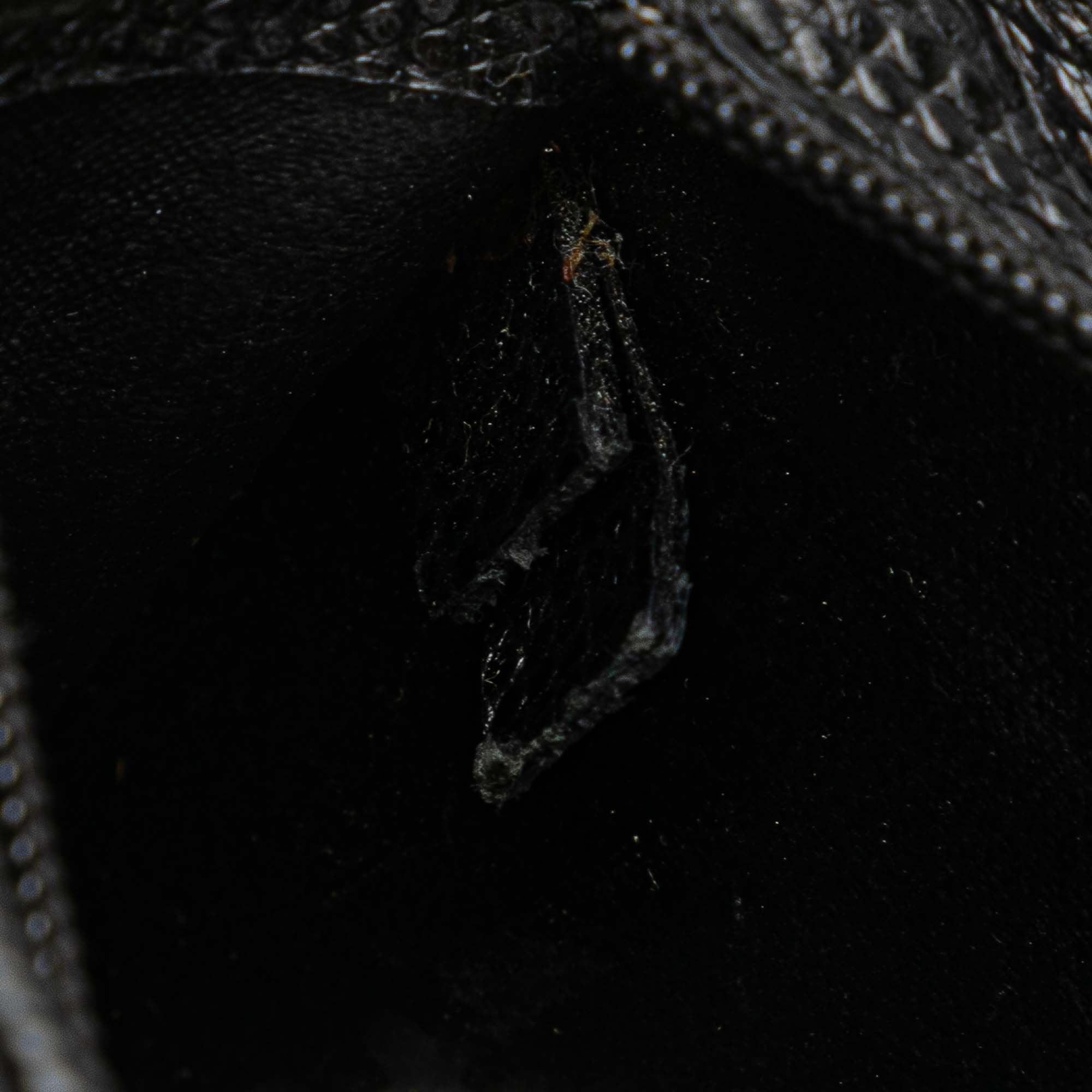 This pouch features an embossed leather body, a top zip closure. Retail Price: 400.00