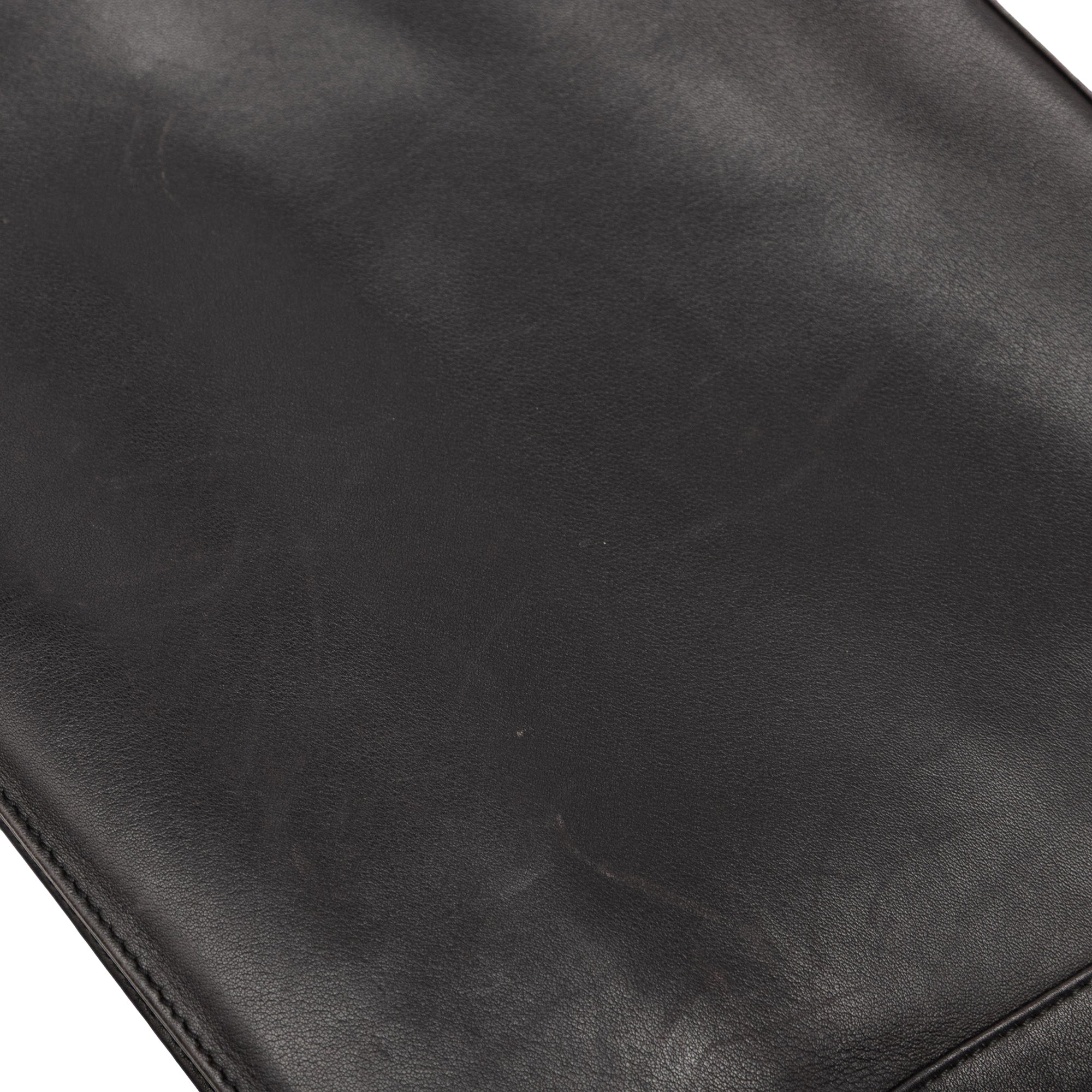 This shoulder bag features a leather body, a flat leather shoulder strap, a top zip closure, and an exterior front slip pocket and interior zip pocket. Retail Price: 600.00