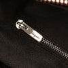 This tote bag features a leather body, flat leather straps, a top zip closure, exterior side zip pockets, and an interior zip pocket. Retail Price: 850.00
