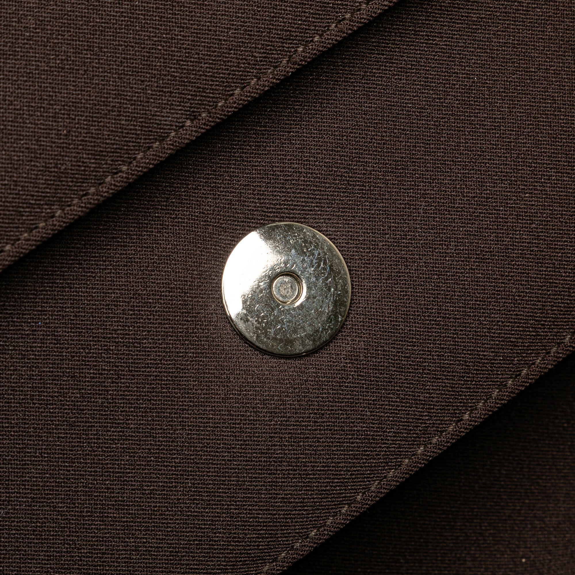 This tote bag features a nylon body, chain link straps, a flap with magnetic snap closure, an exterior slip pocket and an interior zip pocket. Retail Price: 1080.00