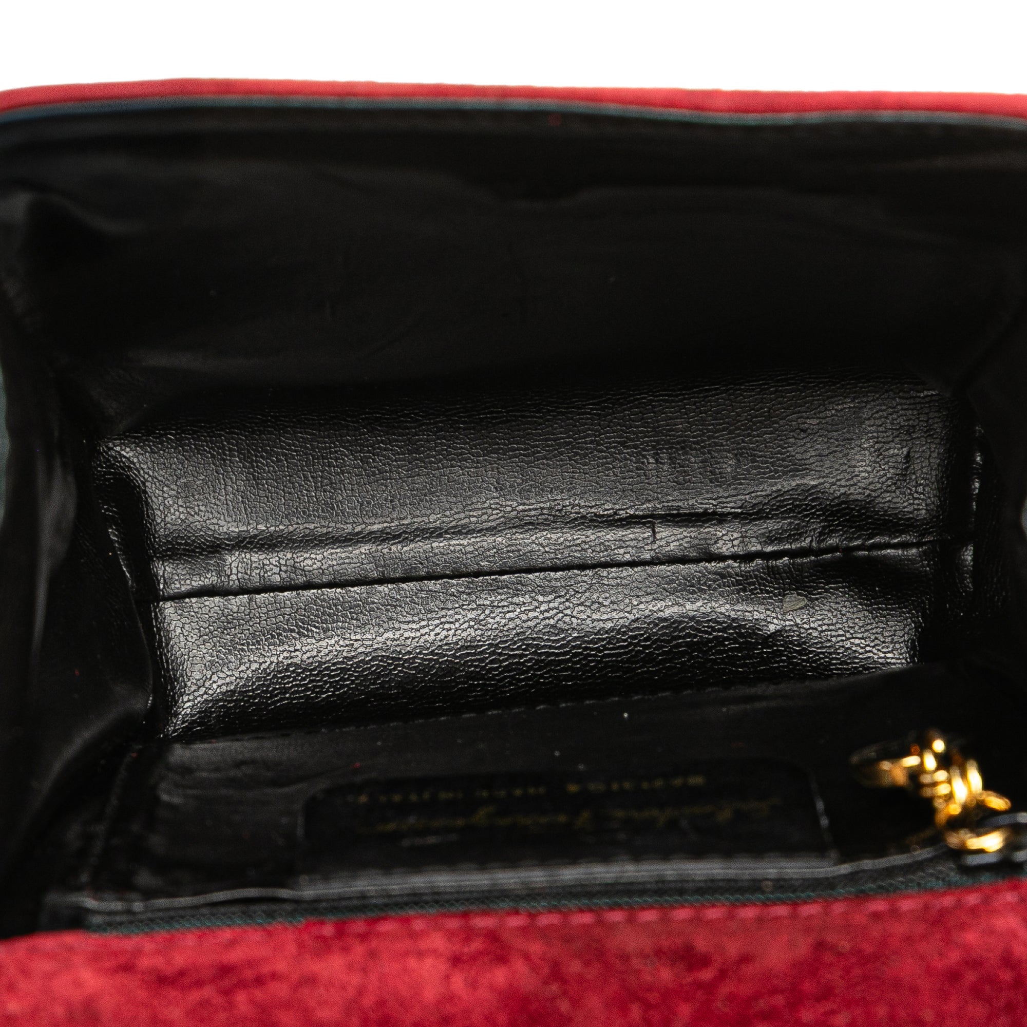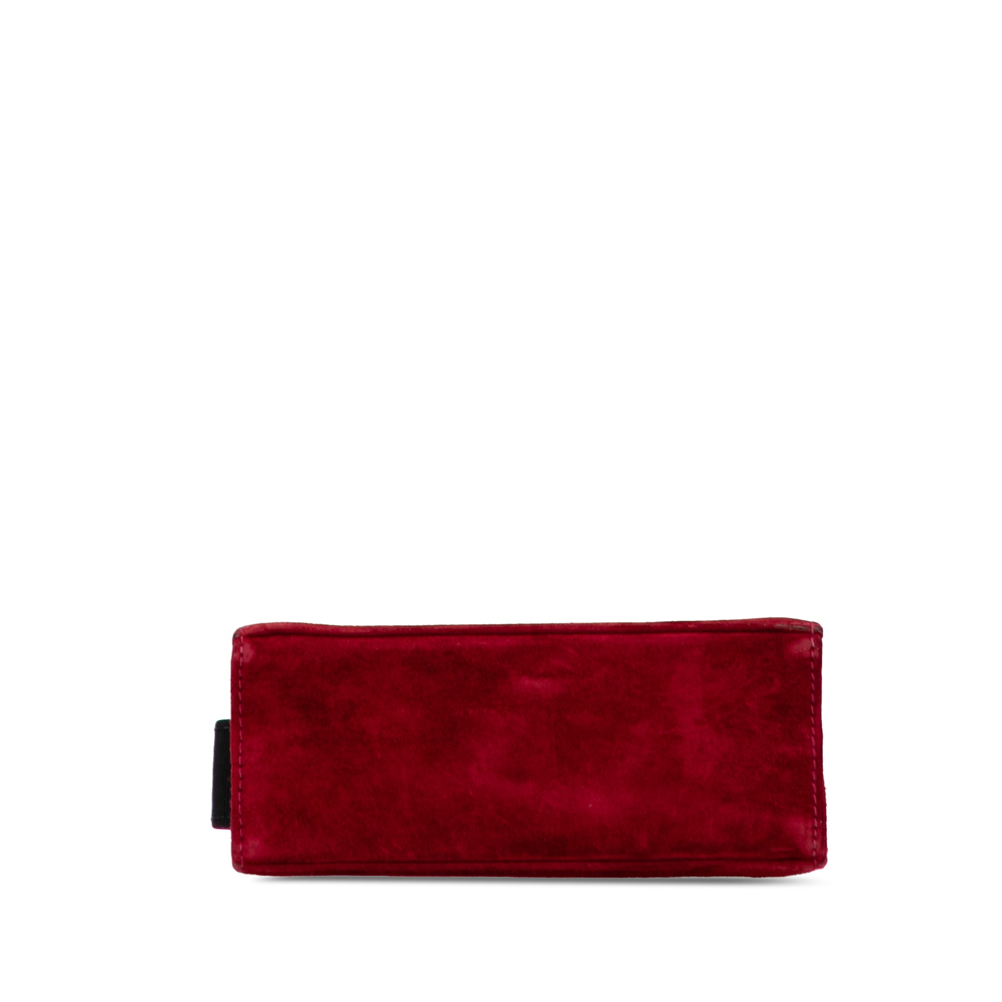 This satchel features a suede body, bow top handle, a detachable flat shoulder strap, a top flap with snap button closure, and an interior zip pocket. Retail Price: 538.00