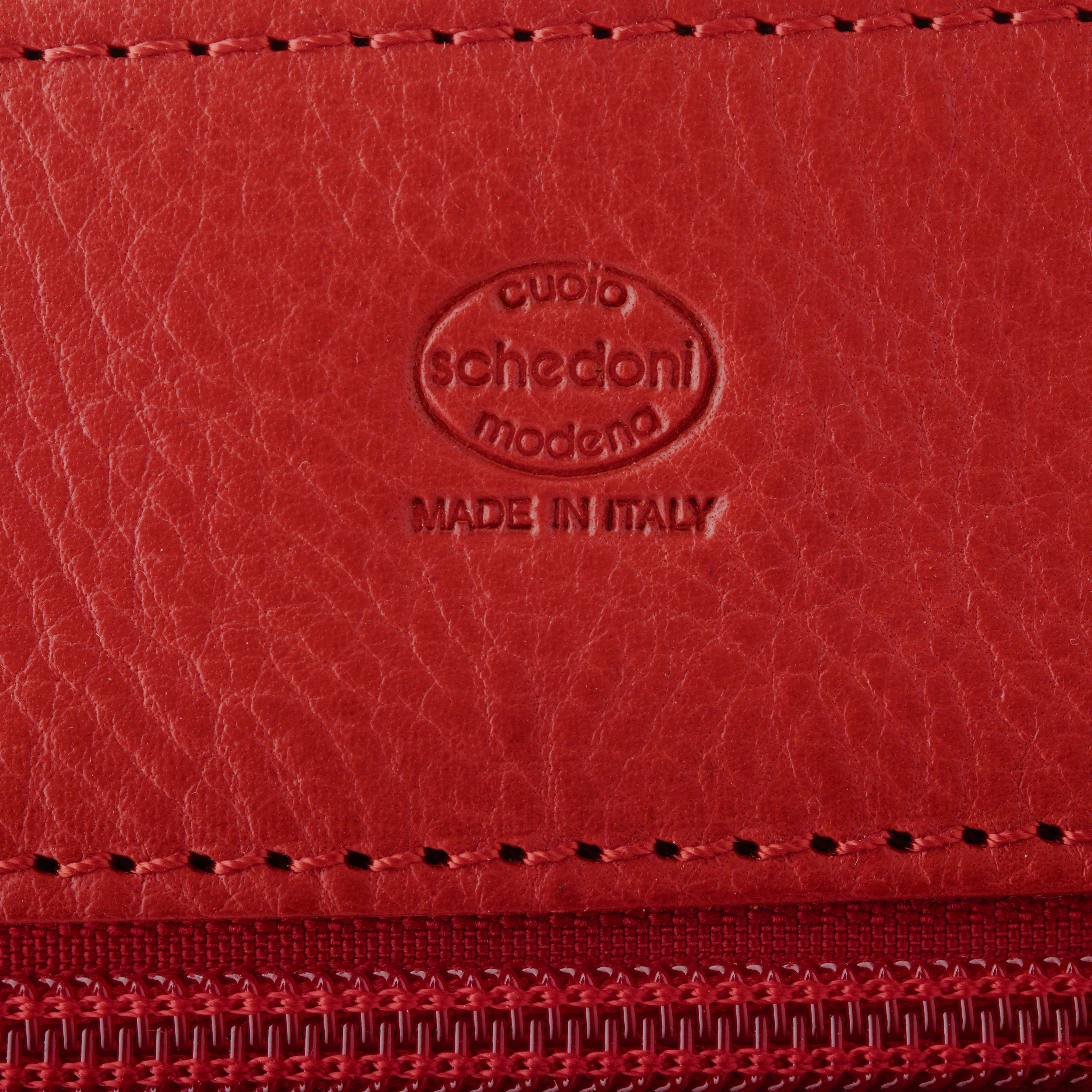The Ferrari Schedoni Shoulder Bag Briefcase from the 1990s in red leather combines iconic design with functionality. Crafted from premium leather, it blends sporty style with refined details, offering organized space for a laptop, documents, and accessories. The adjustable shoulder strap, ergonomic handles, and secure closure ensure practicality, while the precise stitching reflects Ferrari Schedoni’s craftsmanship, making it a unique collectible piece.