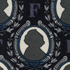 90s Gianfranco Ferré blue silk tie with cameos print. Pointed design model.