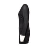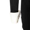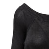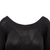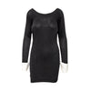 90s runway dress in black knit with a round neckline, bold V-back with button detail, ribbed hems, and detachable luxe silk cuffs.