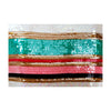 This gorgeous ensemble includes a multicolor striped dress with a black bodice and ruched waist, plus an eye-catching jacket embelished with sequin, featuring a front closure. Wear together or separately for the perfect vintage look.