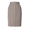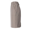 Gianni Versace striped grey wool knee-length skirt. Belt loops, two oblique lateral welt pockets, concealed central rear zip fastening and short bottom slit.