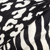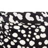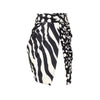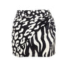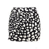 Black and white silk mini skirt in mixed polka dot and animal prints, featuring a side slit and button closure. A playful statement, many ways to style. Remarks: The size is not indicated.