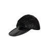 This rare Gianni Versace vintage hat is an iconic collectible from the 90s. Crafted from genuine leather in black, the hat is adorned with silver and golden studded embellishment of the classic Medusa design and logo.