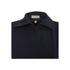 The Gianni Versace blue wool jumpsuit has a sleek and sophisticated design. The jumpsuit has a turn-up collar that adds a touch of class and closes with a front zipper. The flap pocket adds a practical element to the jumpsuit. The padded shoulder and long sleeve with low para create a refined silhouette, while the cuff and jeweled button give a touch of luxury. The jumpsuit also has pence at the waist, making it perfect for enhancing feminine curves. The jumpsuit has two welt pockets on the front and the seams on the back are used for decorative purposes, adding an element of style to the jumpsuit.