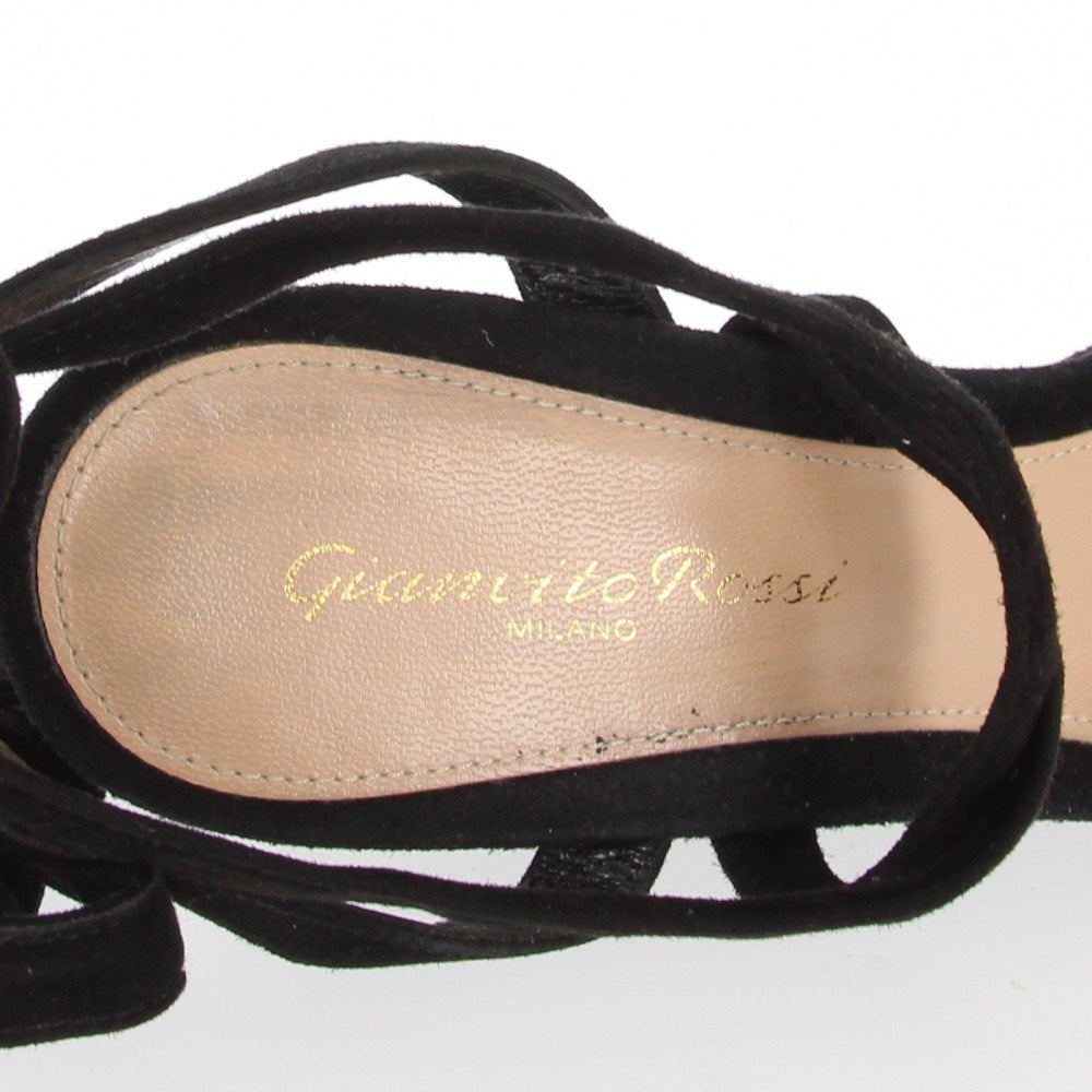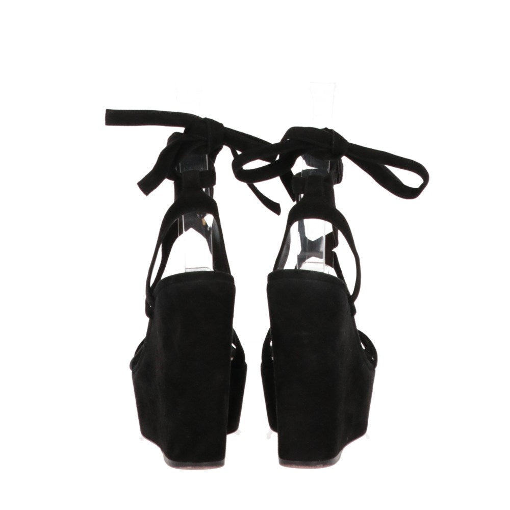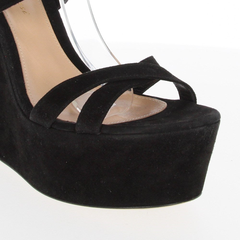 Gianvito Rossi black suede wedges, 2010s. Decorative bands and open toe, raised sole and a fully covered platform. Lace-up ankle strap.