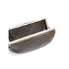 80s Giorgio Armani Privè brown crocodile leather clutch. Snap closure with rhinestones. Internal pocket.