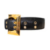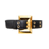 Giuseppe Zanotti wide black leather belt with double holes, bold gold-tone buckle, and signature statement hardware for a striking, structured look.