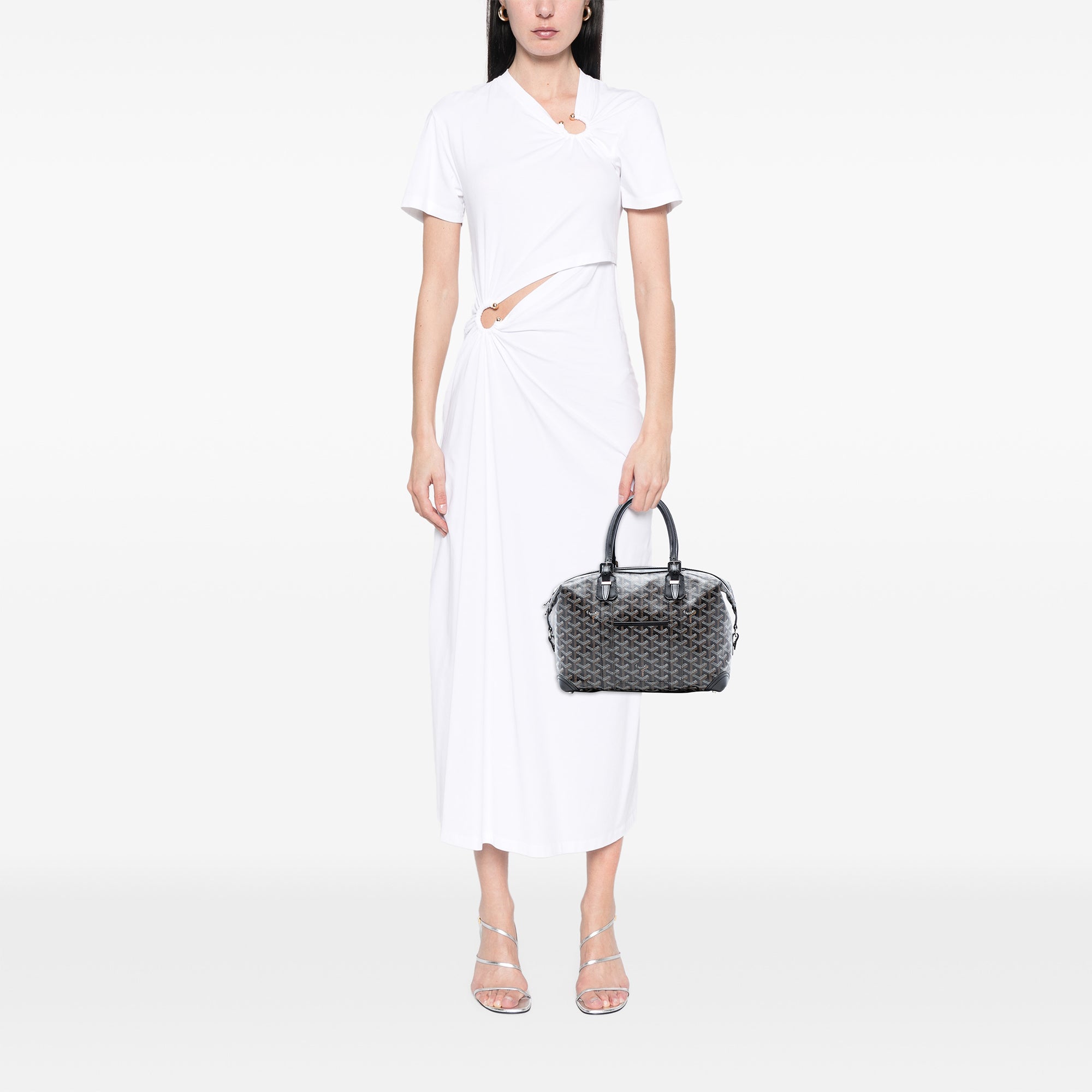 The Boeing 30 features a coated canvas body with leather trim, rolled leather handles, a top zip closure, an exterior front slip pocket, and an interior zip pocket. Retail Price: 2680.00