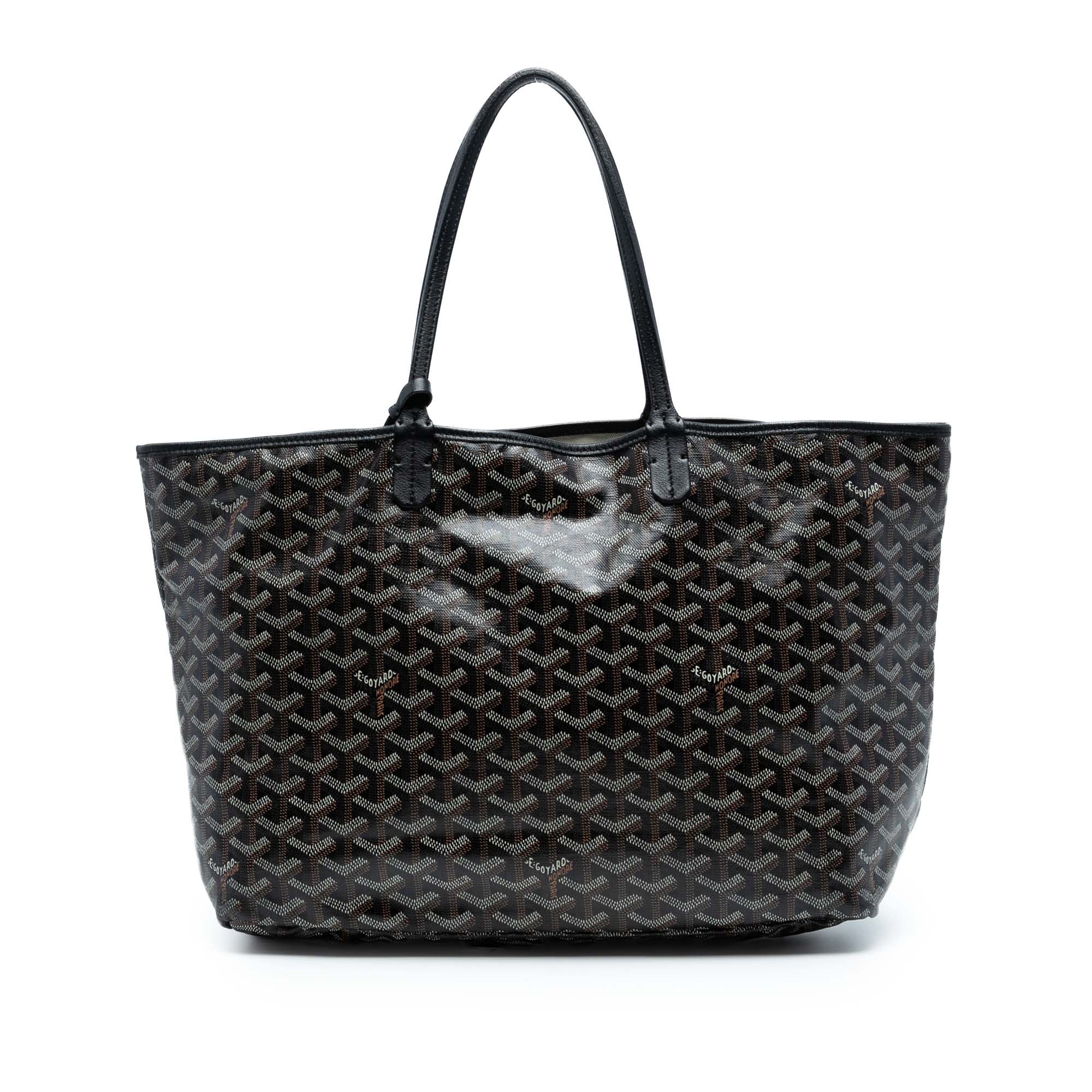 The Saint Louis GM features a coated canvas body with leather trim, flat leather handles, an open top, and a pouch inclusion. Retail Price: 3500.00