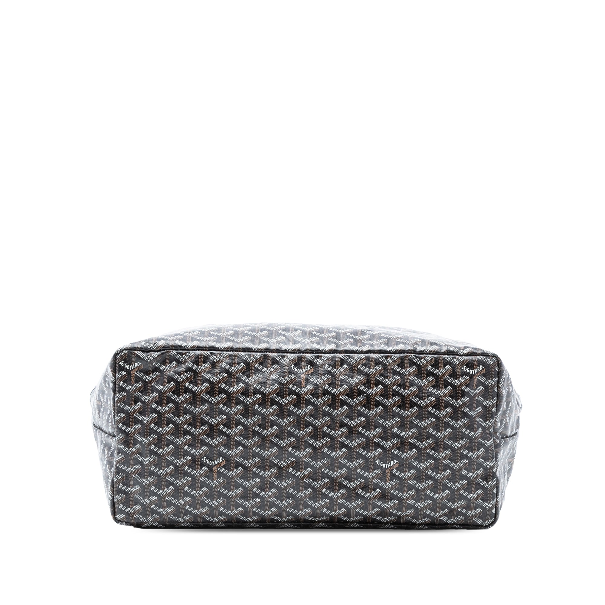 The Saint Louis GM features a coated canvas body with leather trim, flat leather handles, an open top, and a pouch inclusion. Retail Price: 3500.00