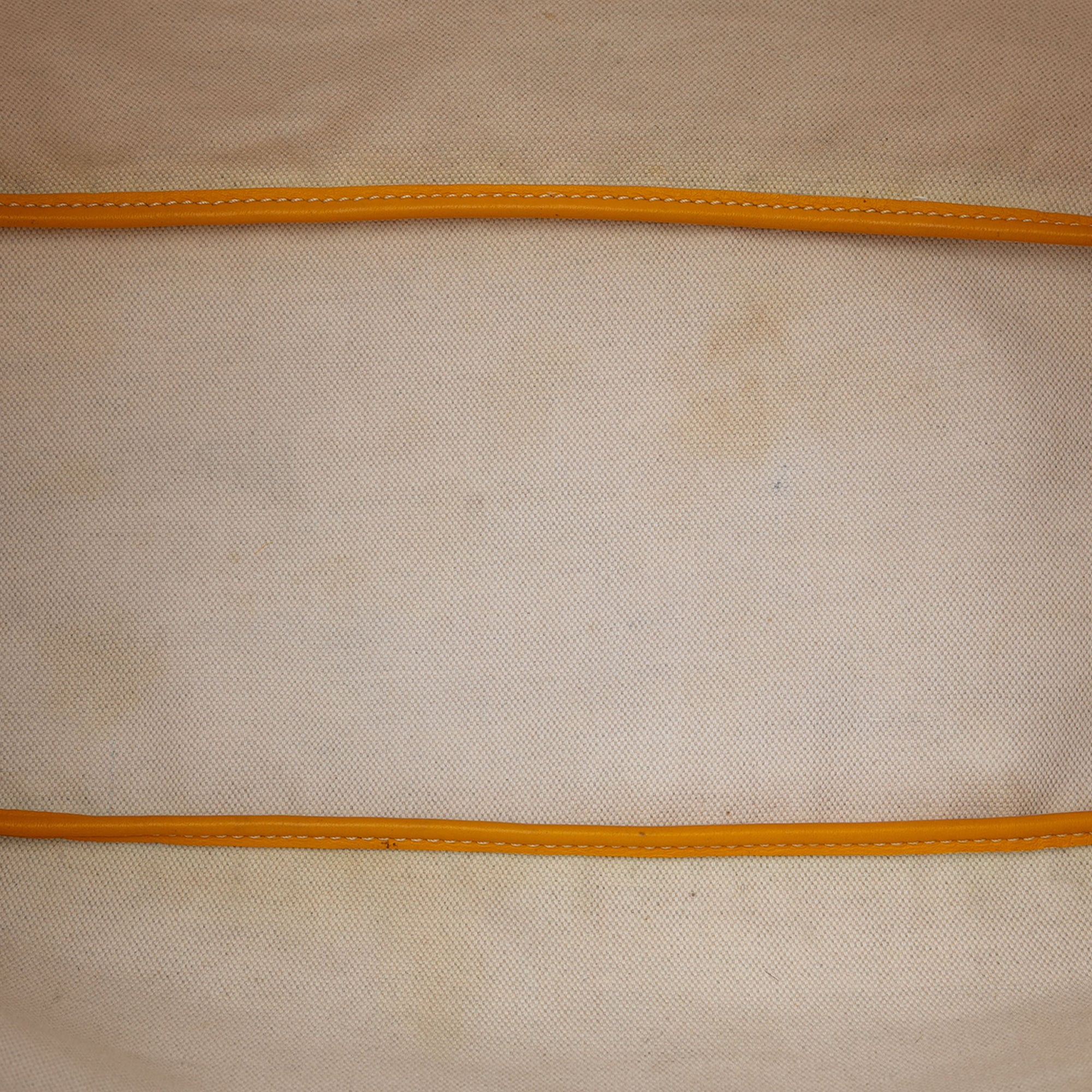 The Goyardine Saint Louis PM features a coated canvas body with leather trim, flat leather handles, an open top, and a pouch inclusion. Retail Price: 3650.00