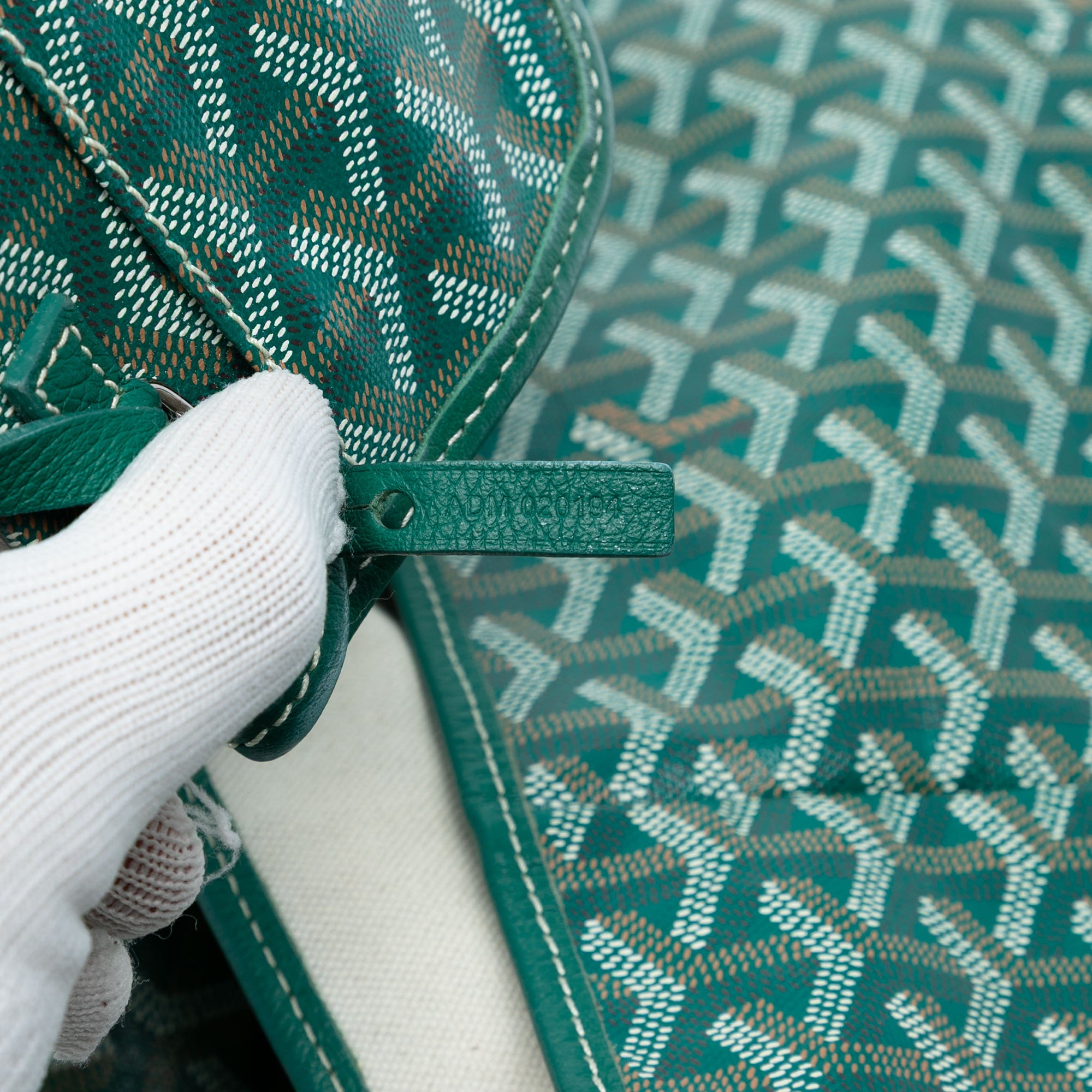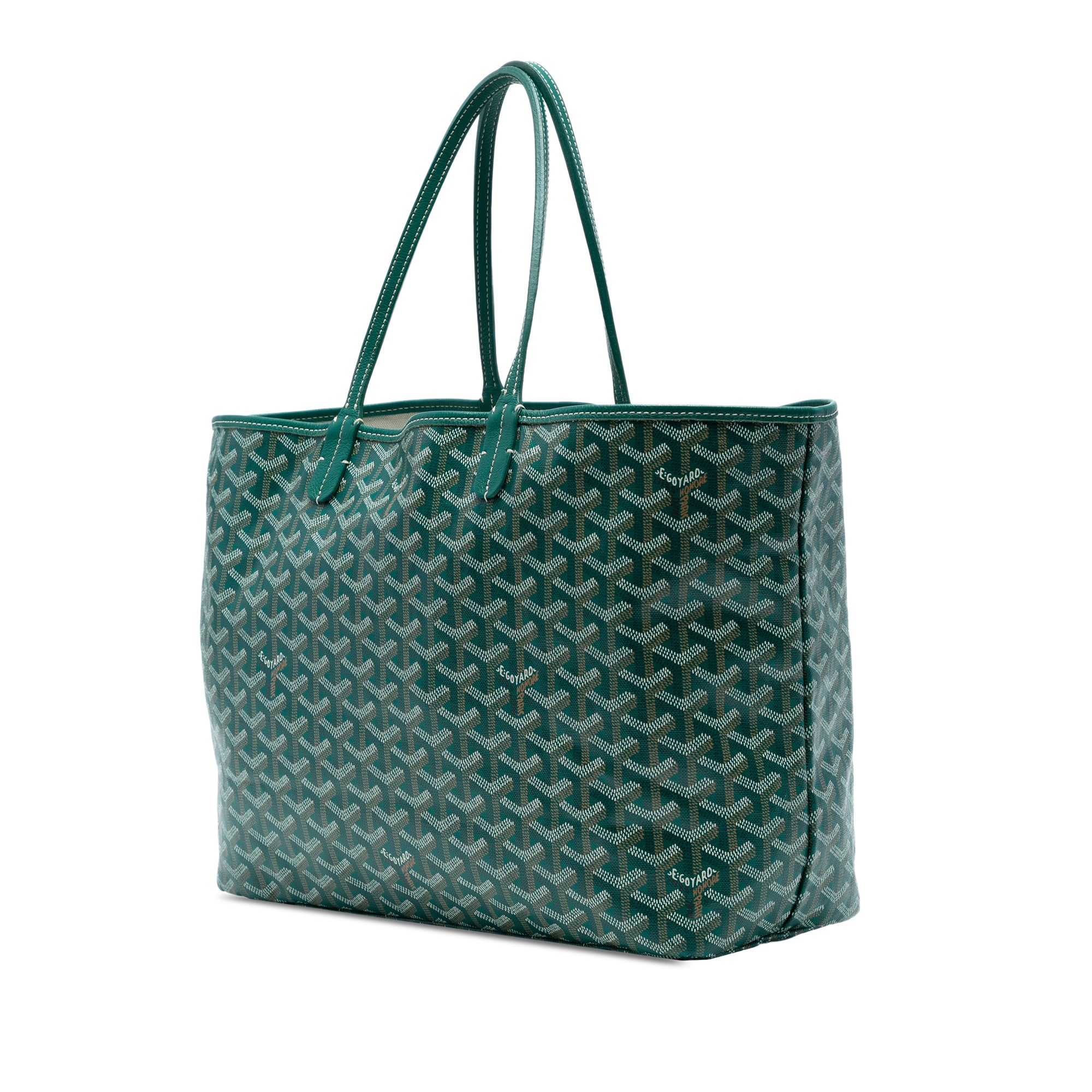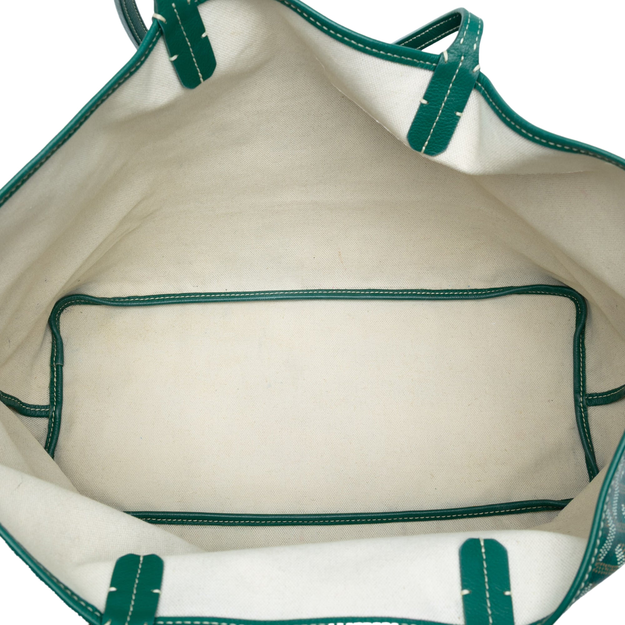 The Saint Louise PM features a coated canvas body with leather trim, flat leather handles, an open top, and a detachable flap pouch. Retail Price: 2557.00