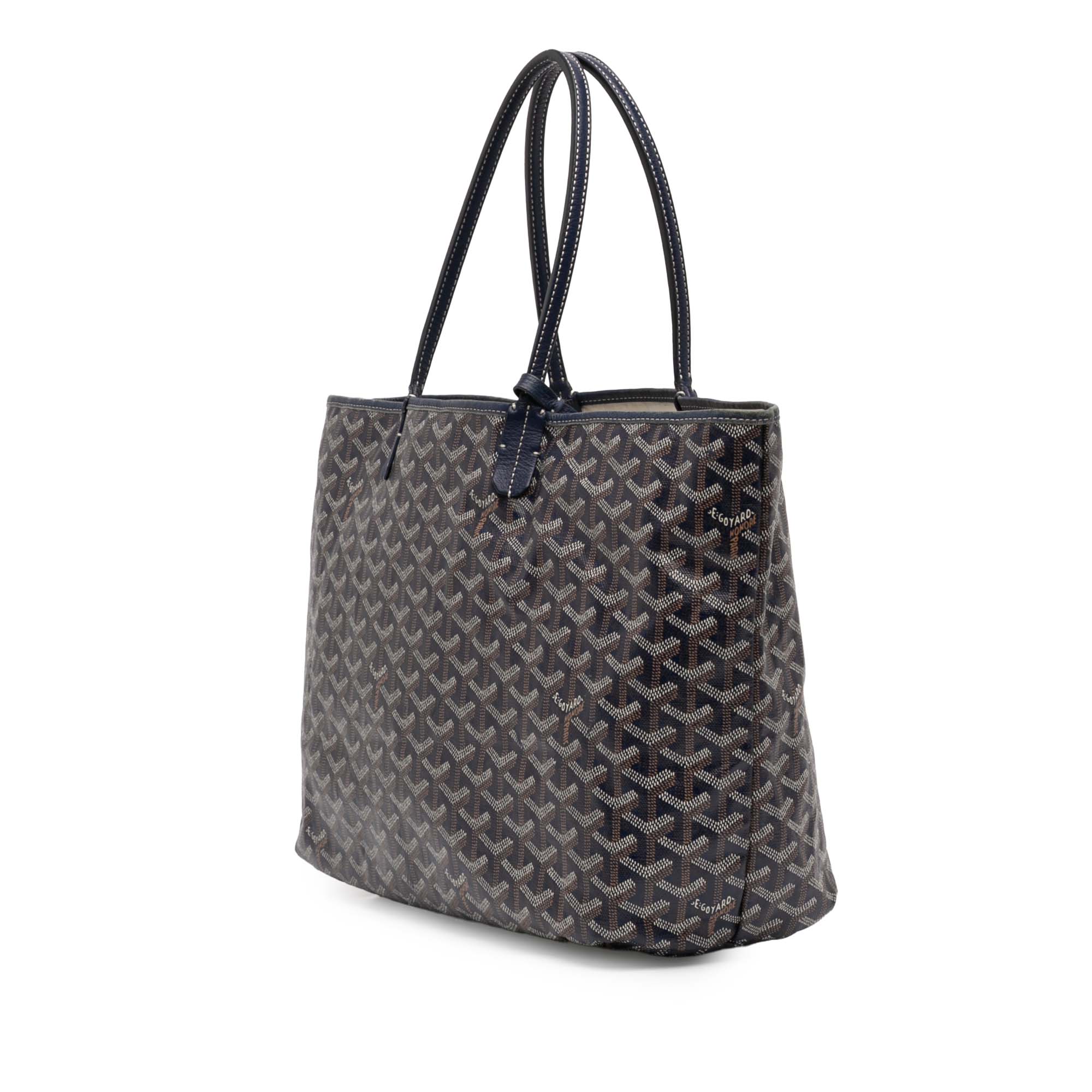 The Saint Louis PM features a coated canvas body, flat leather straps, an open top, and an interior pouch. Retail Price: 2900.00