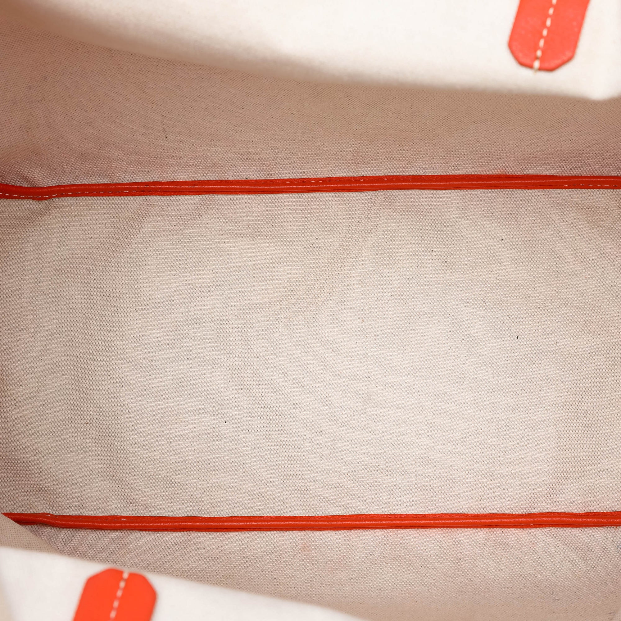 The Saint Louis PM features a coated canvas body with leather trim, flat leather handles, an open top, and pouch inclusion. Retail Price: 2772.00