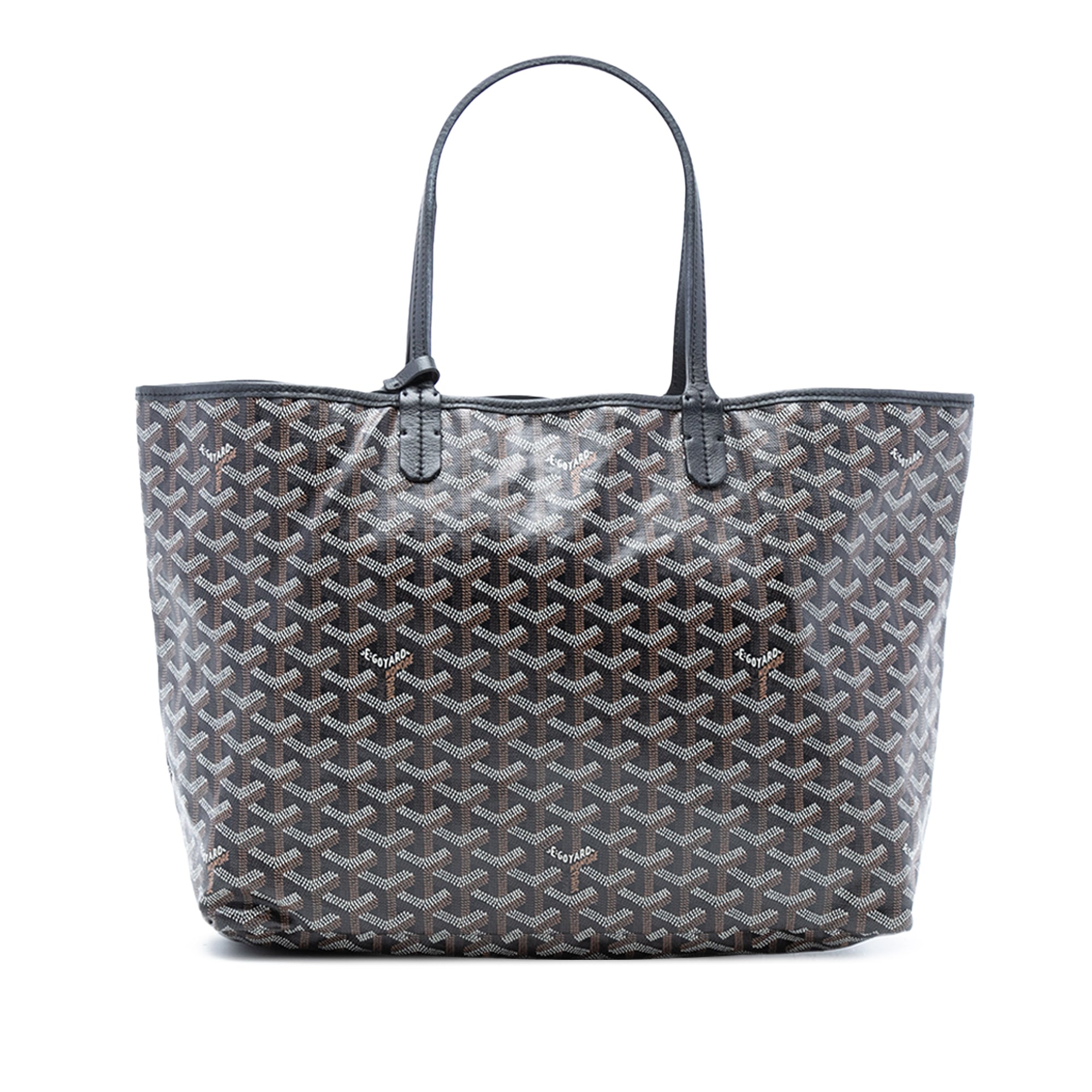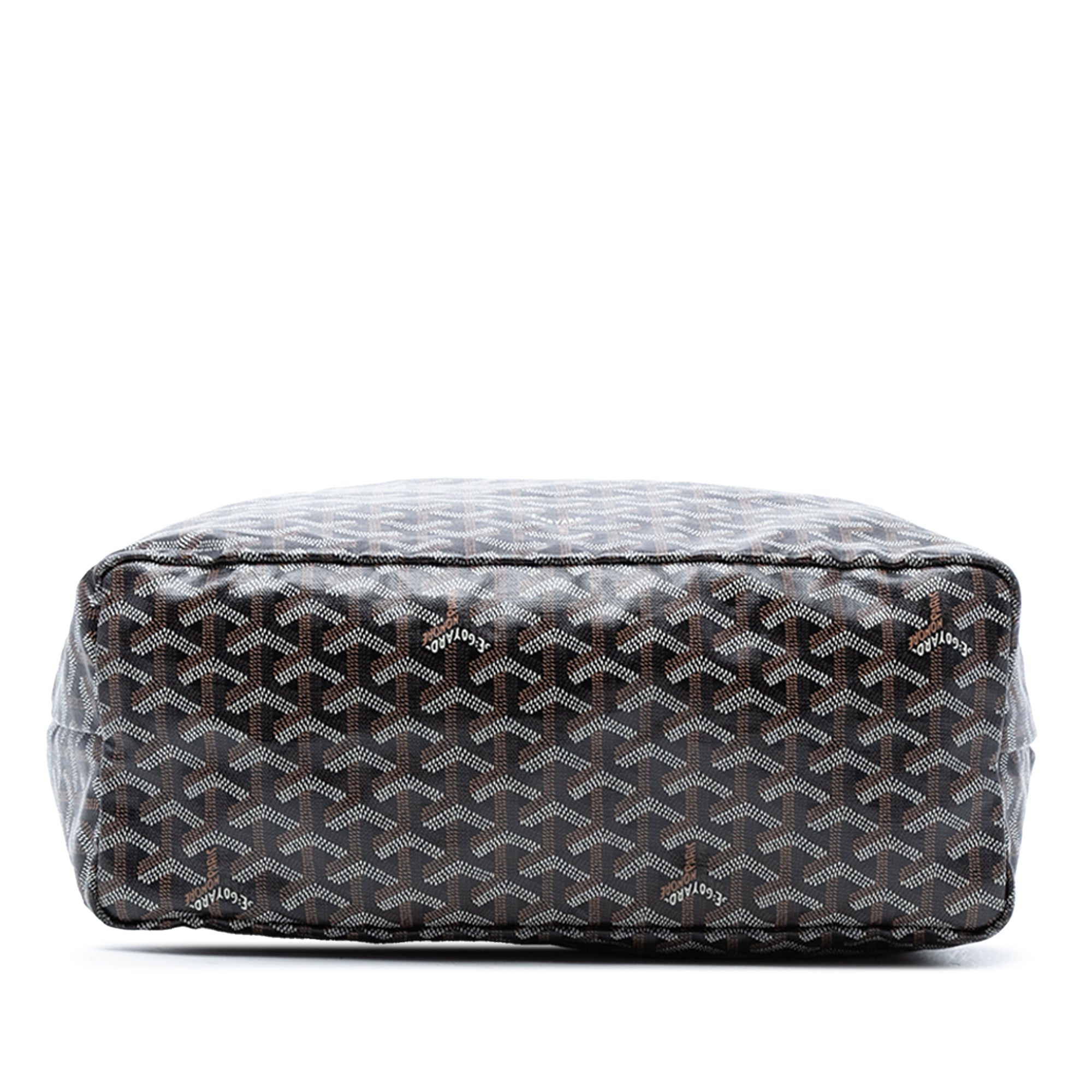 The Saint Louis PM features a coated canvas body with leather trim, flat leather handles, an open top, and a pouch inclusion. Retail Price: 3660.00