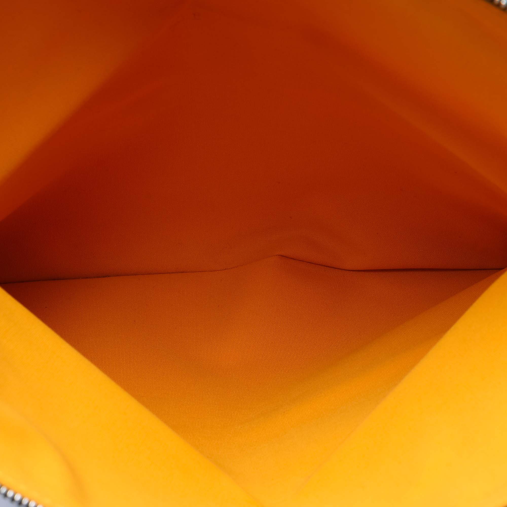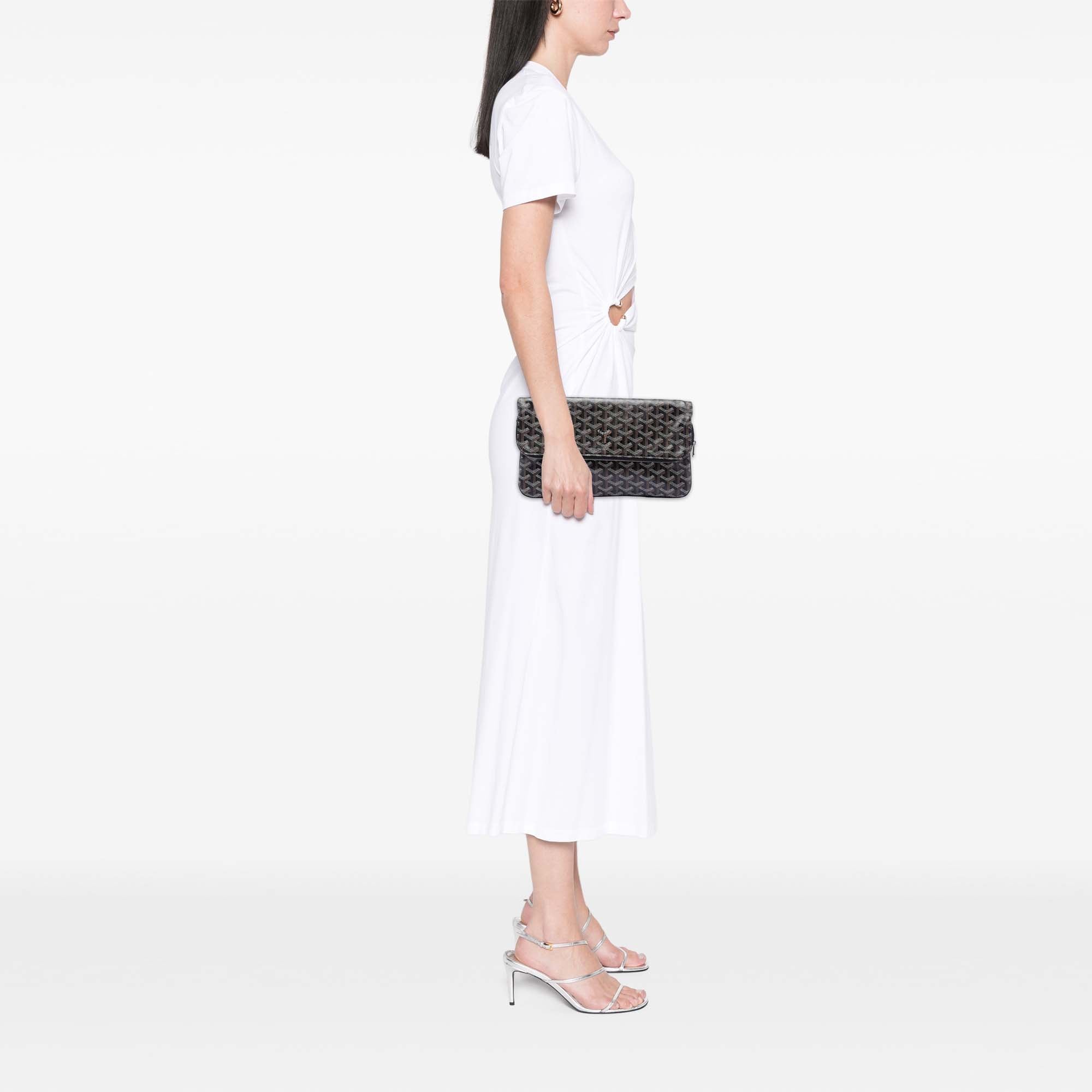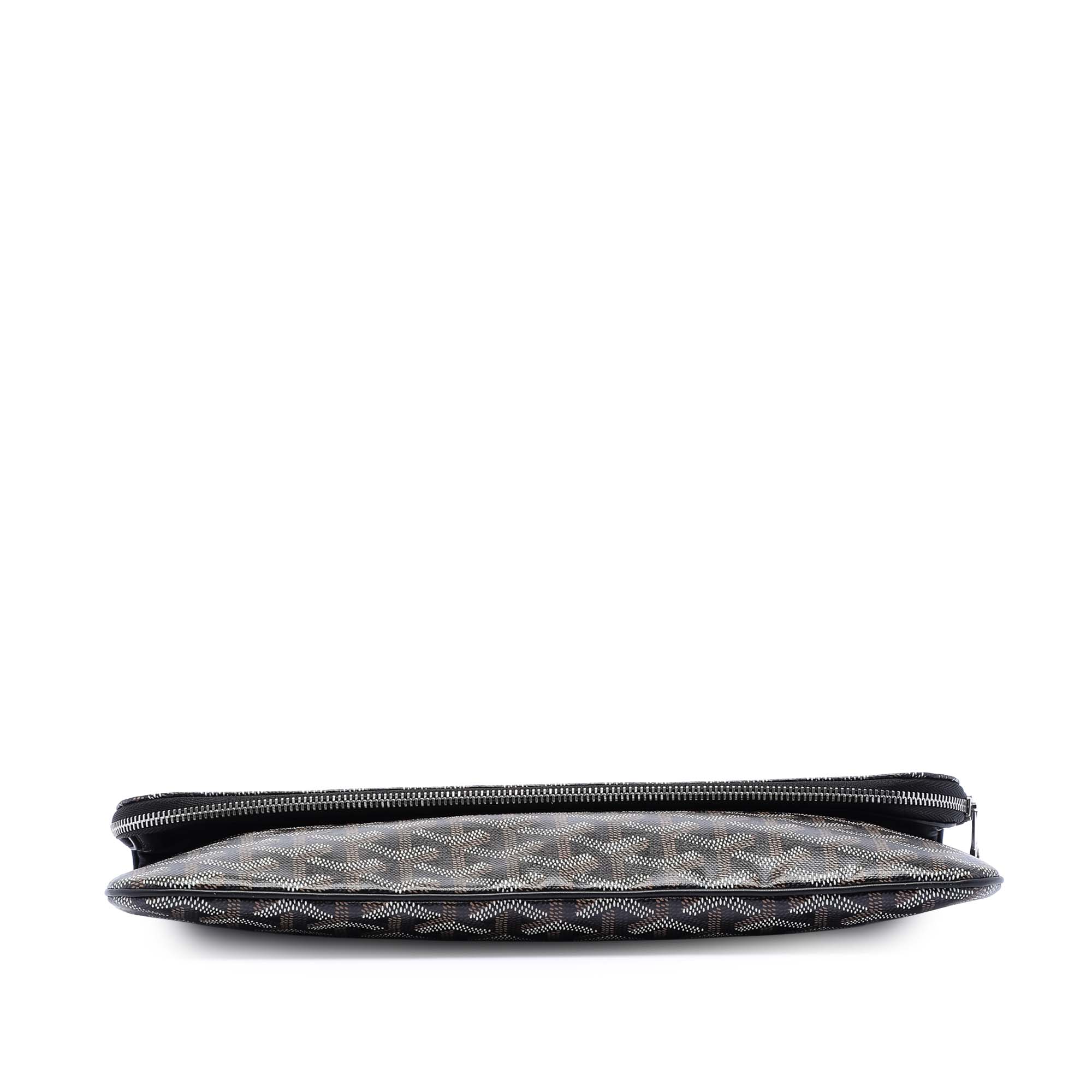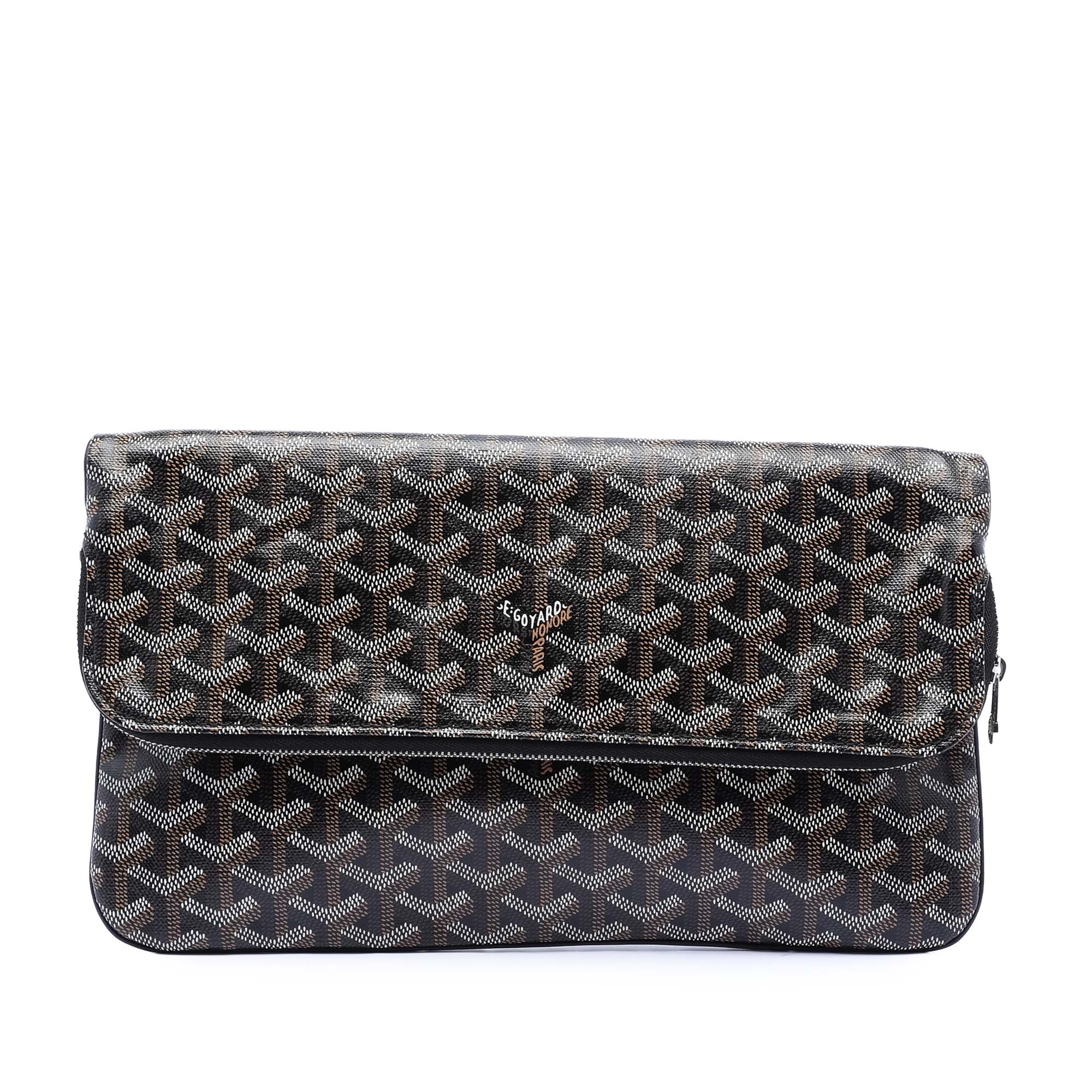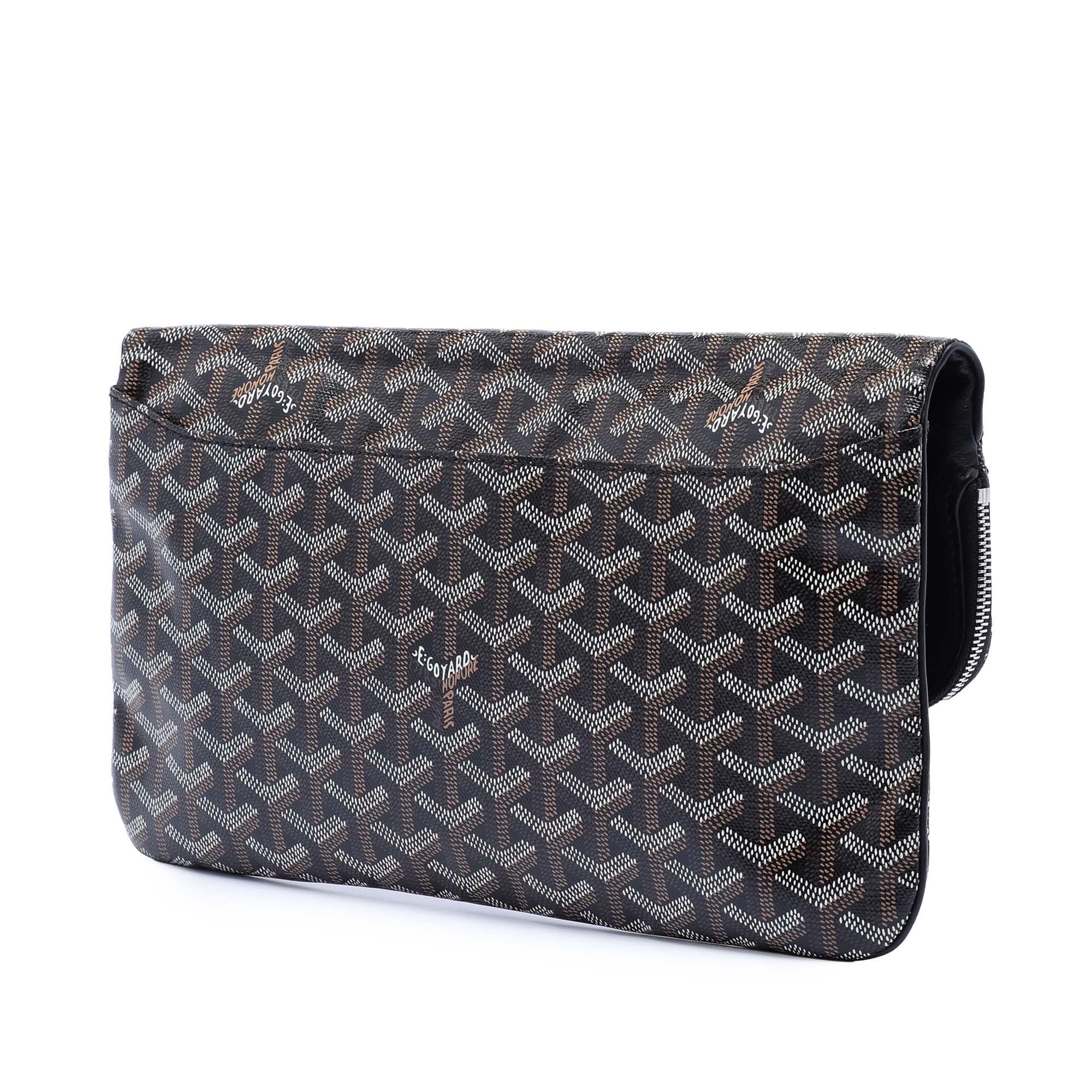 This clutch bag features a coated canvas body, a back exterior slip pocket, and a flap with zip closure. Retail Price: 1513.00