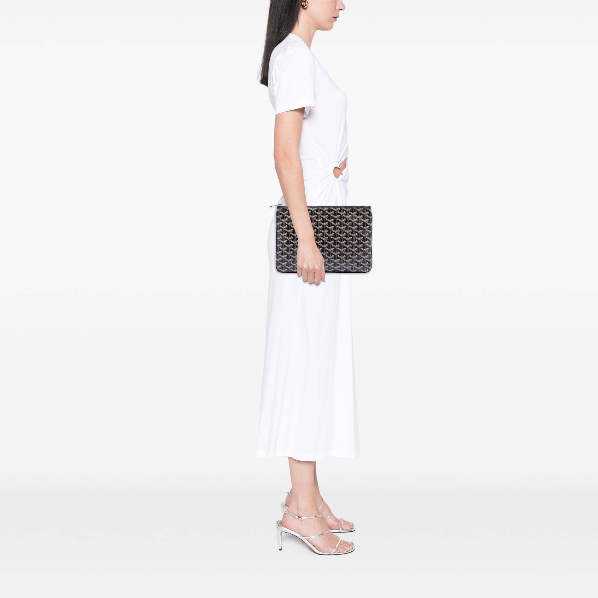 The Senat MM features a coated canvas body with leather trim, a top zip closure, and an interior slip pocket. Retail Price: 1460.00