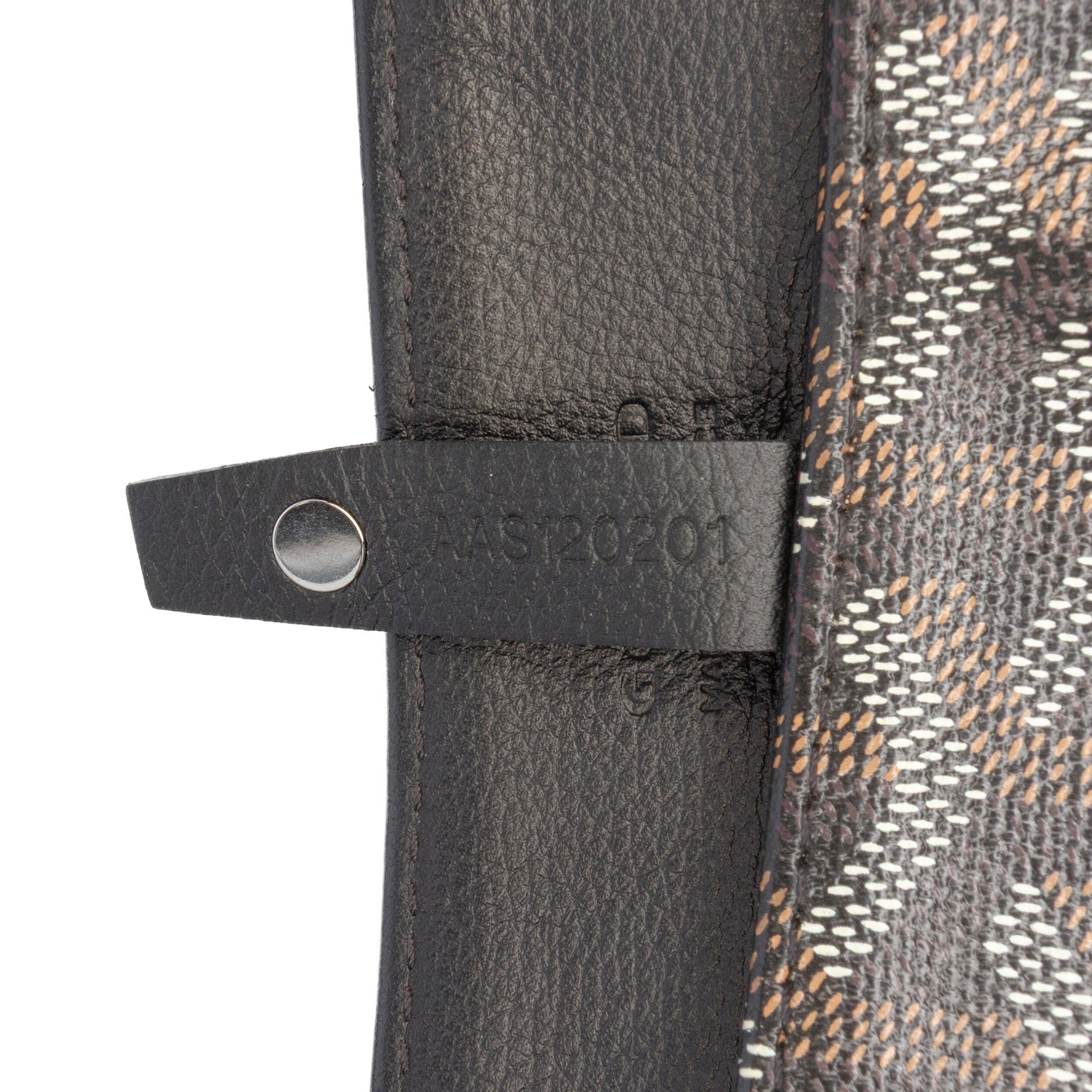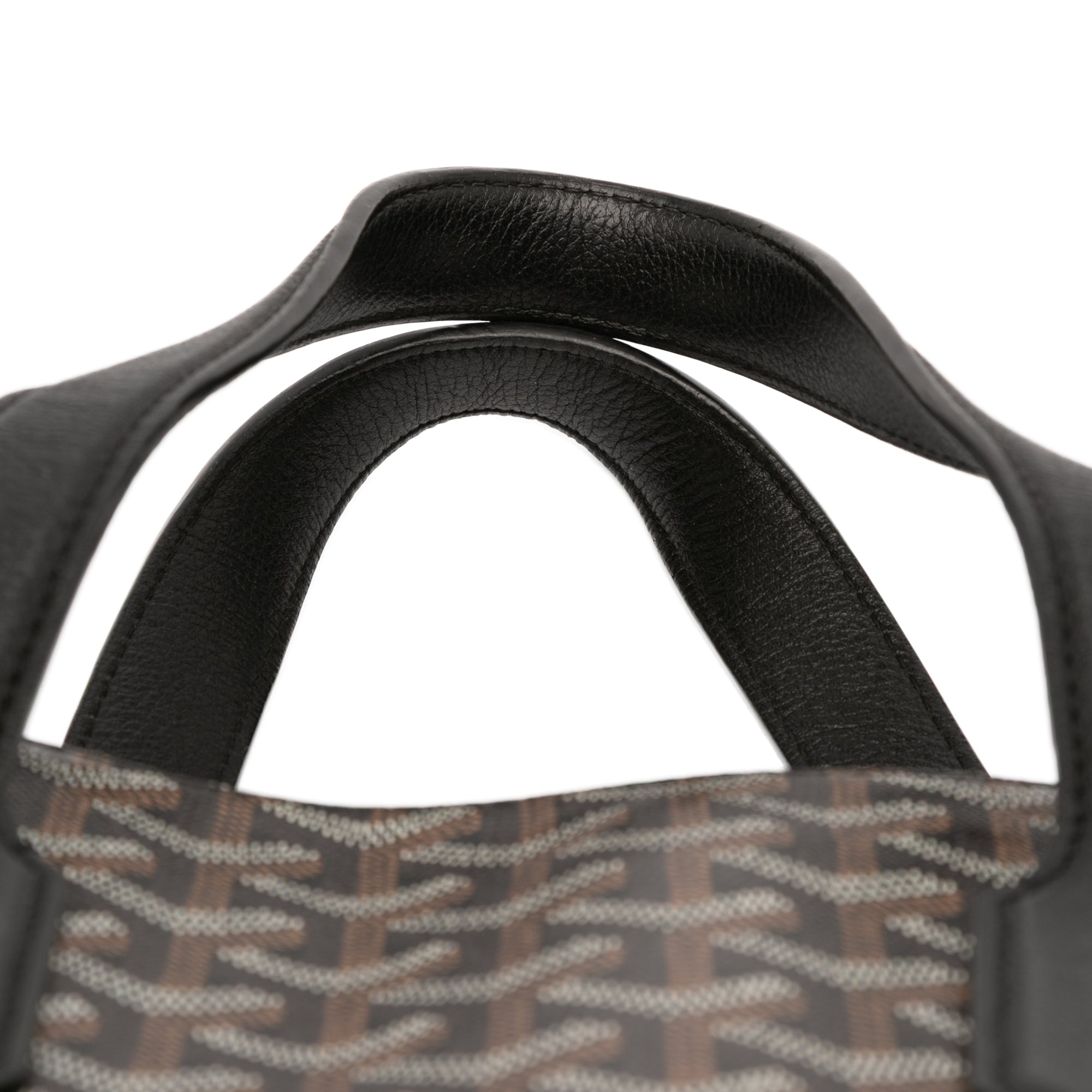The Voltaire Tote bag features a coated canvas body with leather trim, a flat leather handle, and an open top. Retail Price: 2300.00