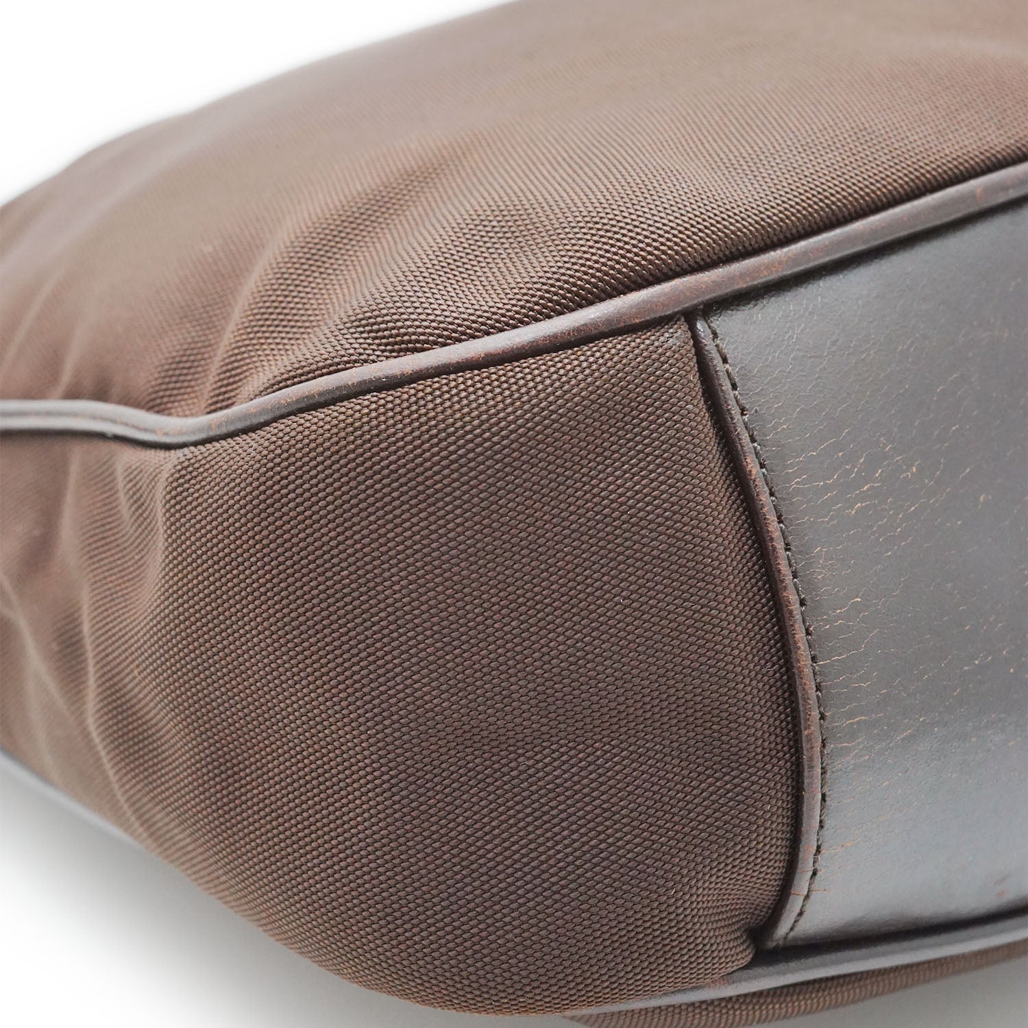 Bamboo 2way Nylon Shoulder Bag Brown Nylon, LeatherDepth: 9.5cmHeight: 26cmWidth: 28cmShoulder Drop: 47cmHand Drop: 15cmOutside Rank: BInside Rank: BDiscoloration: Some discoloration on the leather parts (bottom, shoulder strap), slight hardware tarnishScratch: Some scratches on the bamboo top handle/hardware/leather parts (bottom)Peeling: Minor leather cracking on the four top cornersInclude: Dust bagSerial code: 001.1638 001998