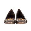 Gucci ballet flats in metallic brown color, made from high-quality leather and feature a round toe for comfort. The signature horsebit bamboo detail in a gold tone is a classic Gucci design element that adds a touch of luxury and sophistication to the shoes.