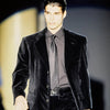 From fall 1995 by Tom Ford, grey velvet blazer in a cotton and silk blend with cupro lining. Features a sleek two-button closure.