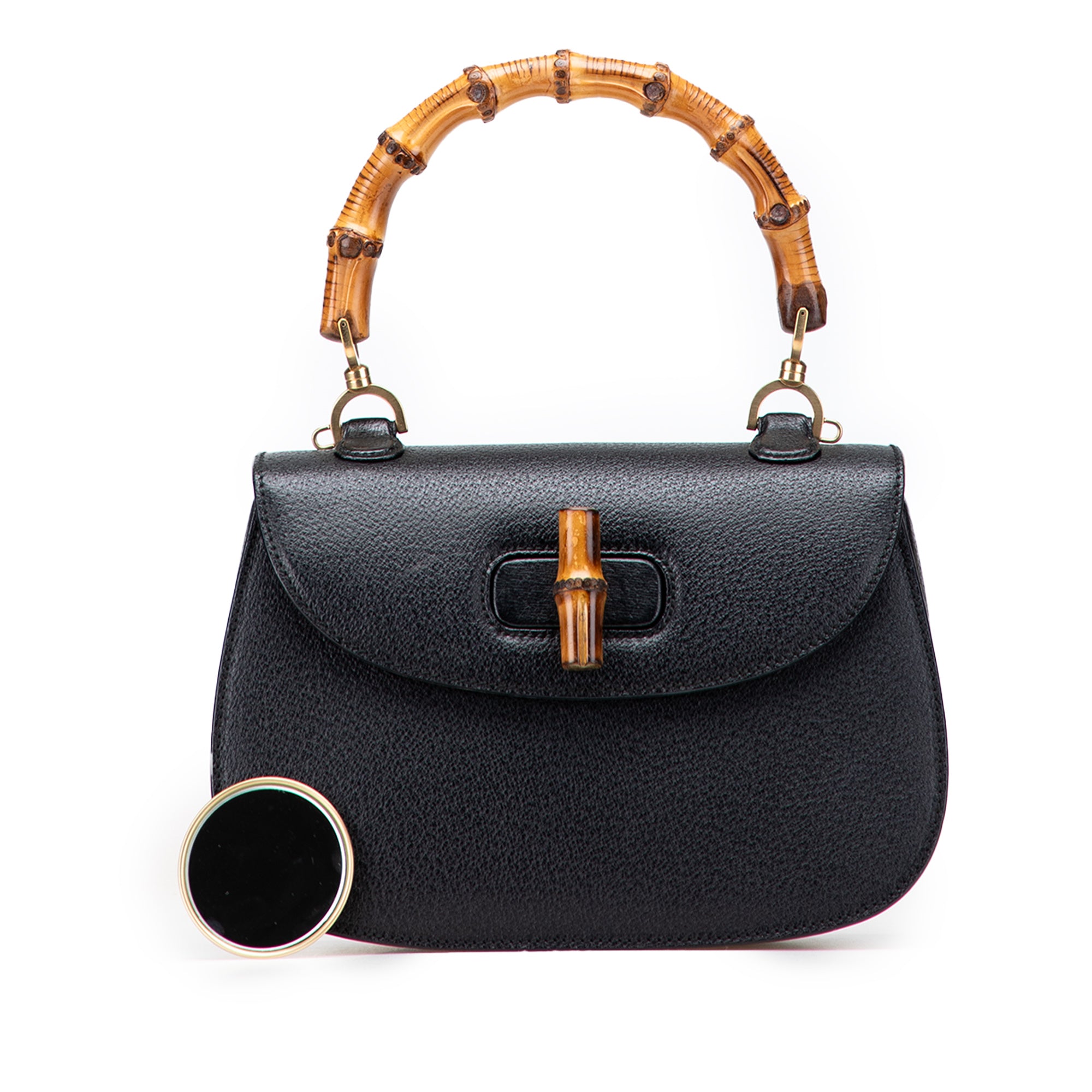 The Bamboo Night features a leather body, a bamboo top handle, a flap with bamboo turn lock closure, and interior zip and slip pockets. Retail Price: 5000.00
