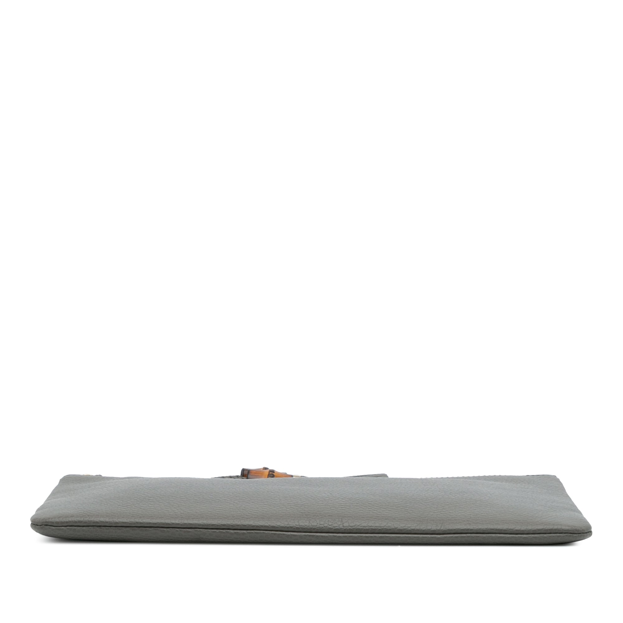 This clutch bag features a leather body, a top zip closure with a bamboo tassel zipper pull, and an interior slip pocket. Retail Price: 600.00